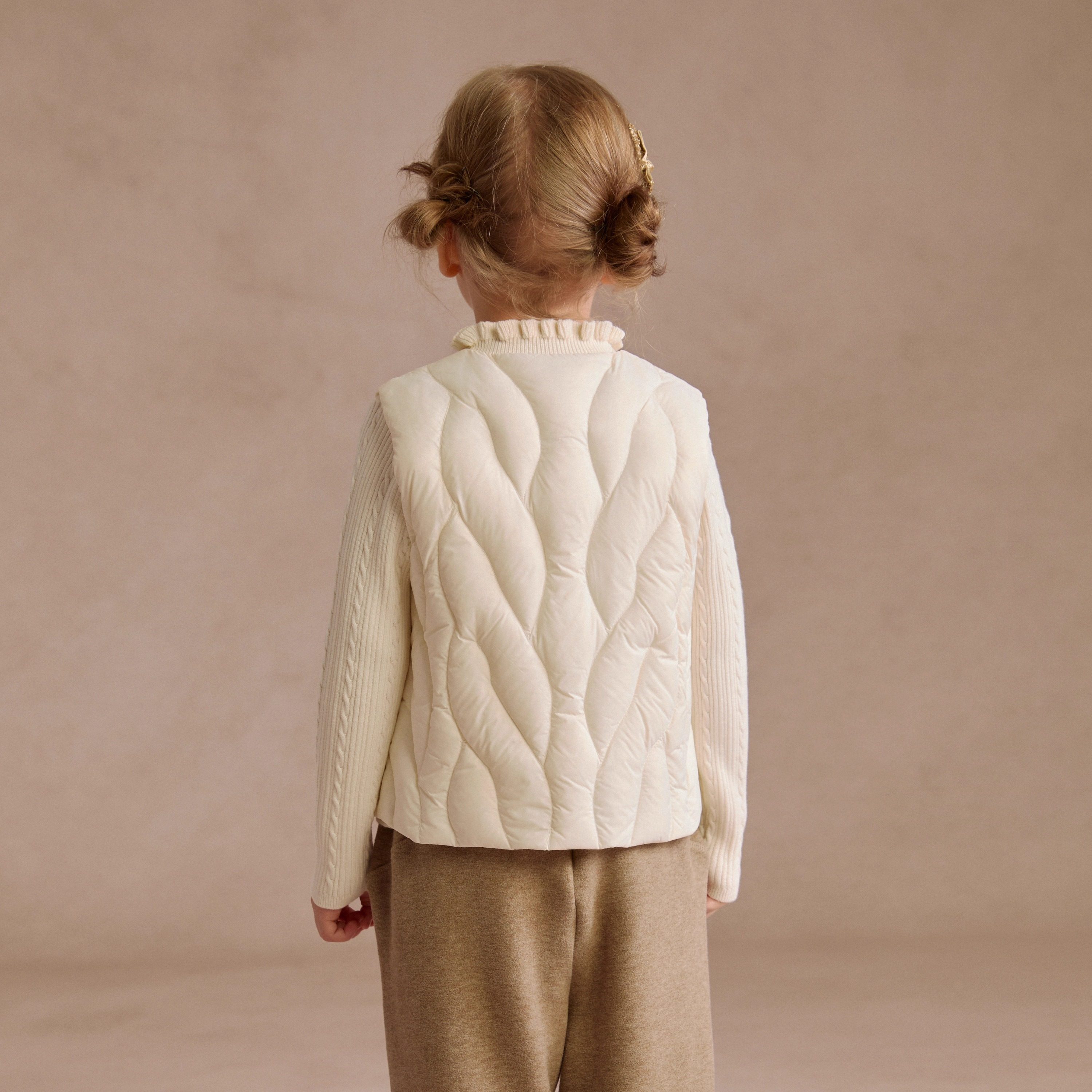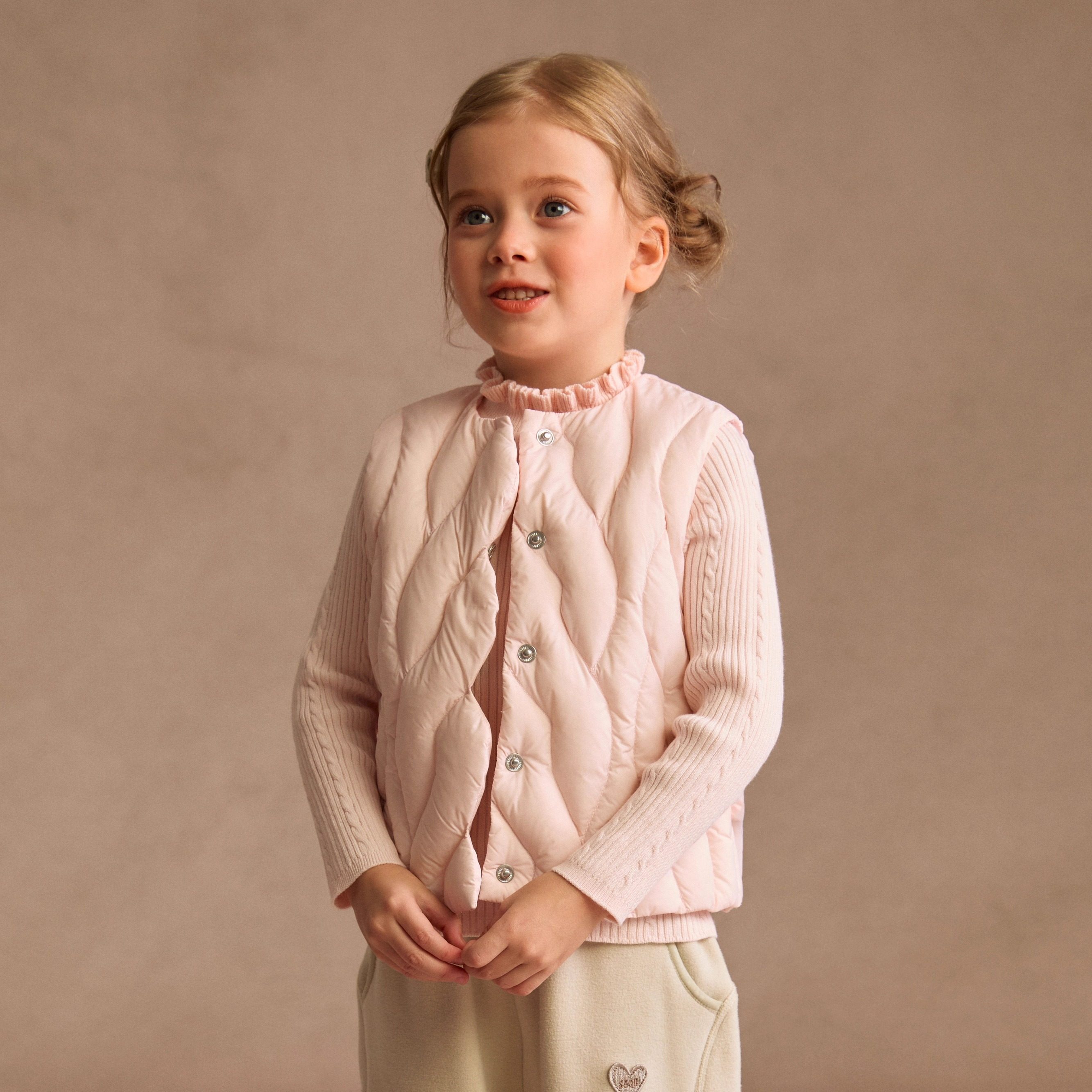 ✨外观上,这款羽绒马甲采用了简约而不失时尚的设计风格,特别适合女童穿着。它的颜色鲜艳,图案精致,显得十分可爱。无袖设计更显得活力四溢,背心内搭的设计既保暖又时尚,完美结合了多种风格。