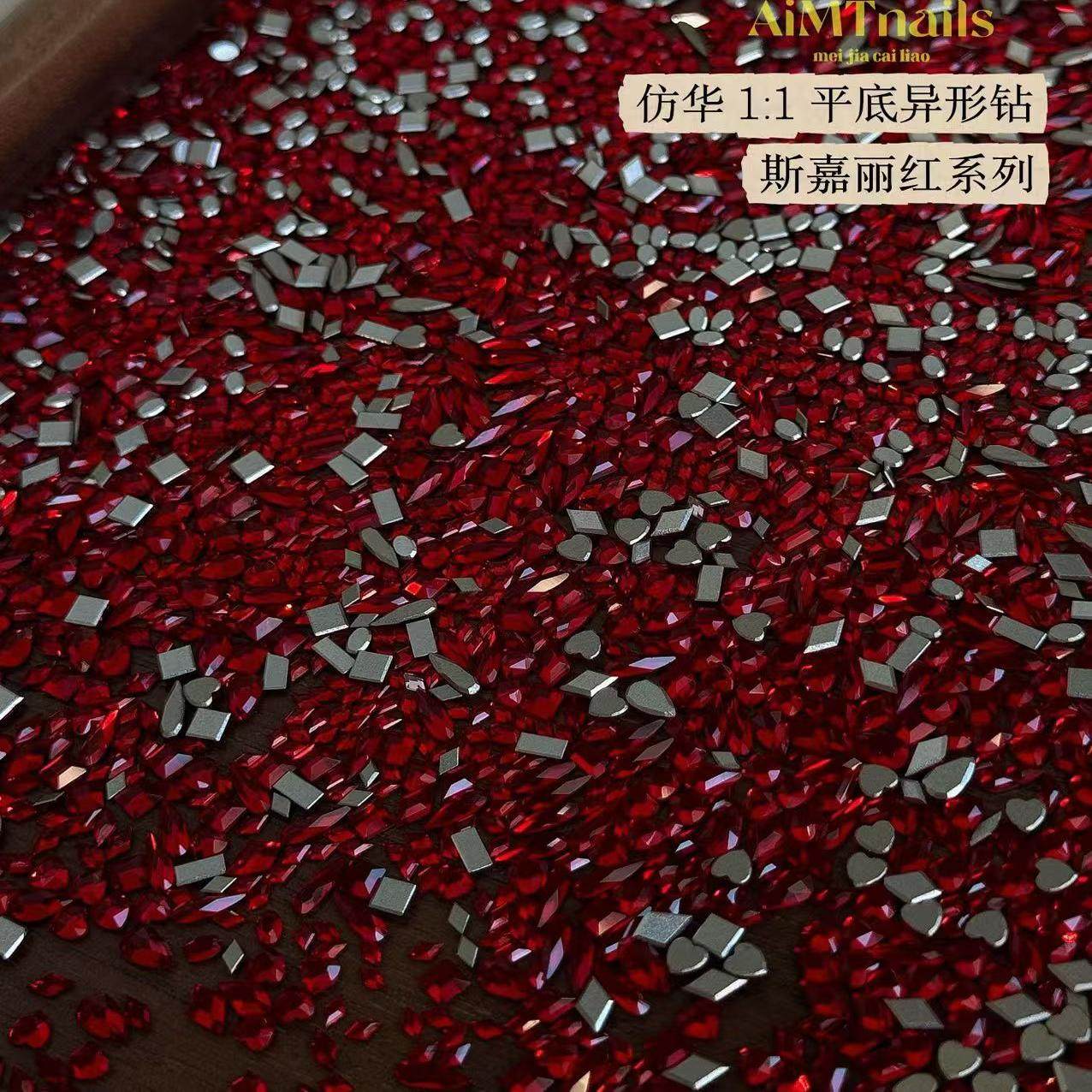 📚 「「AiMTnails马姑娘家新品平底侧切仿华斯嘉丽红平底异形钻饰」