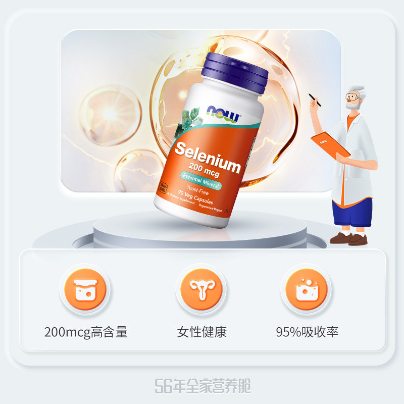 📚 【自营】NOW美国进口氨基酸硒维生素补硒片女性硒元素200mcg胶囊