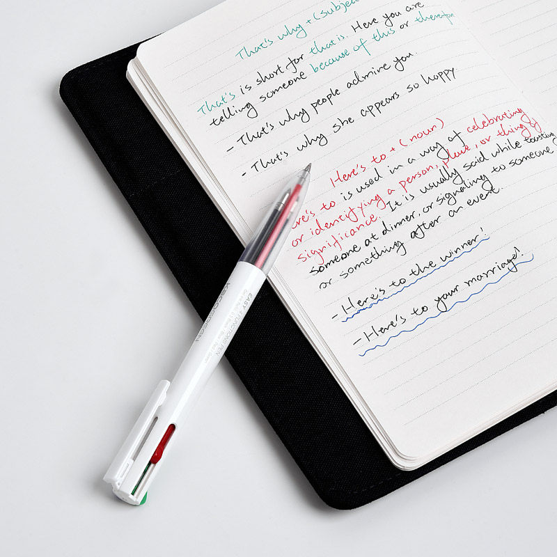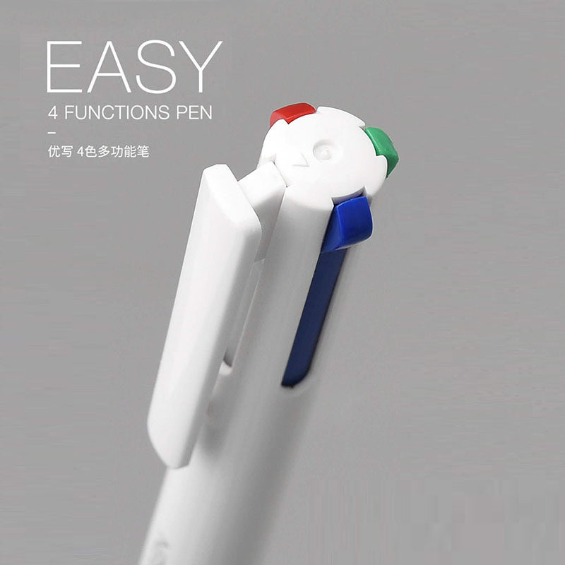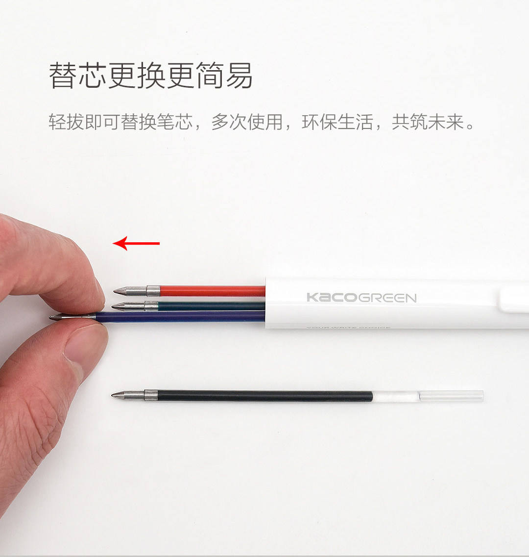 📚 KACO优写4色按动0.5mm四色中性笔4in1简约多功能四合一商务办公签字笔学生手账水笔多色笔黑蓝红绿色可换笔芯