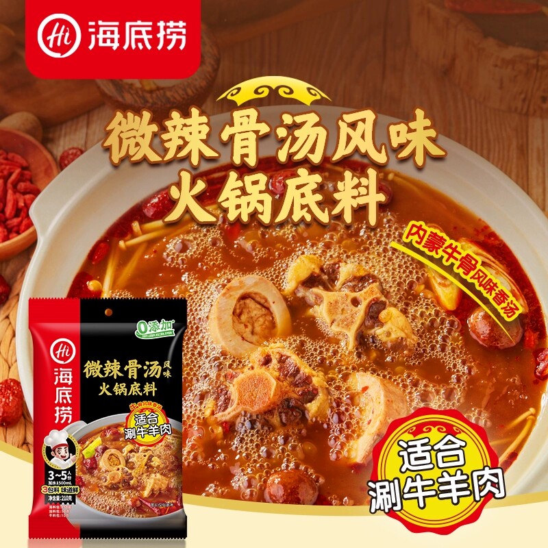 📚 海底捞微辣骨汤清汤风味火锅底料210g麻辣烫香锅火锅冒菜多用底料