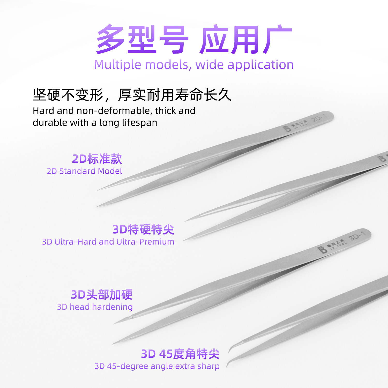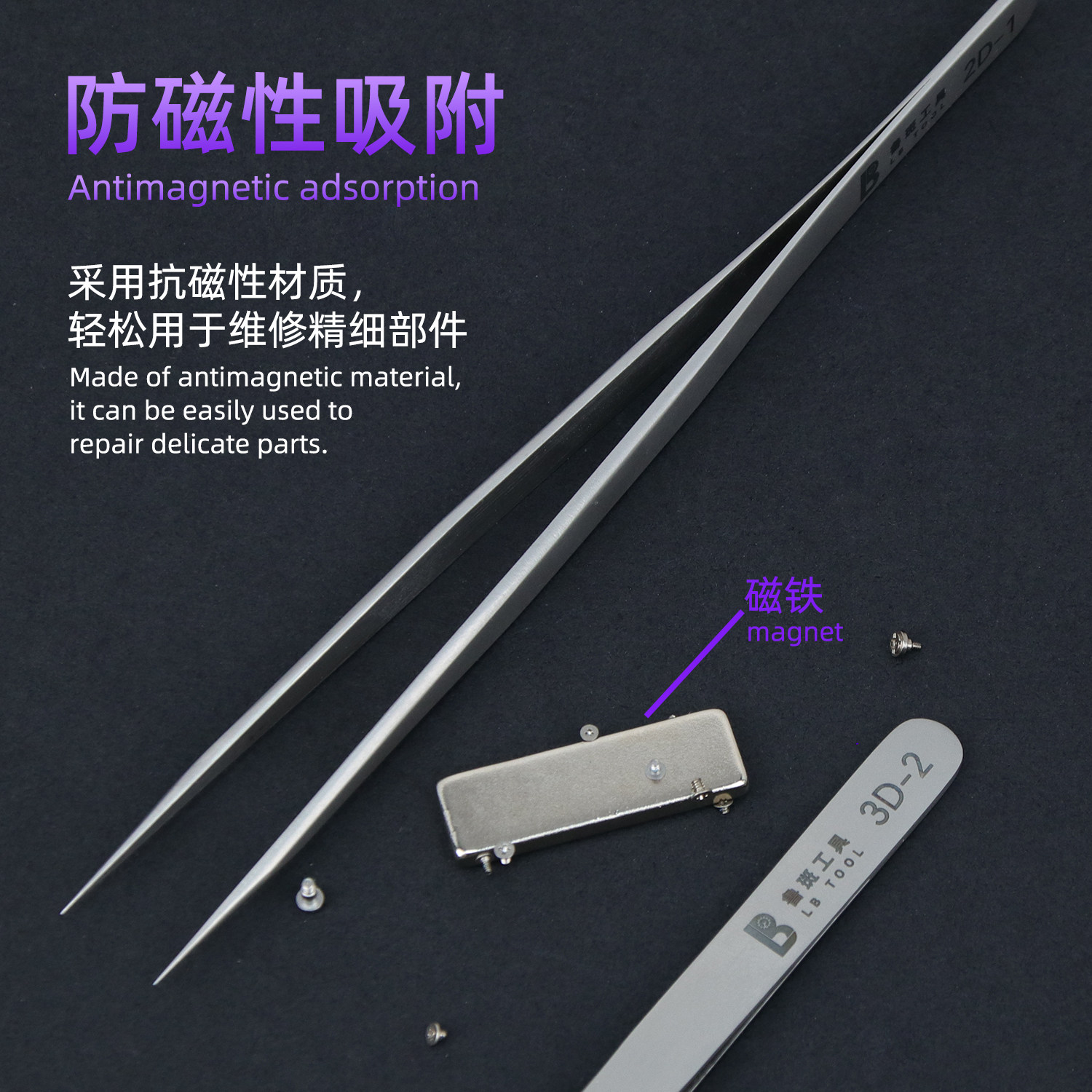 📚 鲁斑3D合金镊子防磁吸超尖枪头手机维修高精密特尖特硬飞线镊子