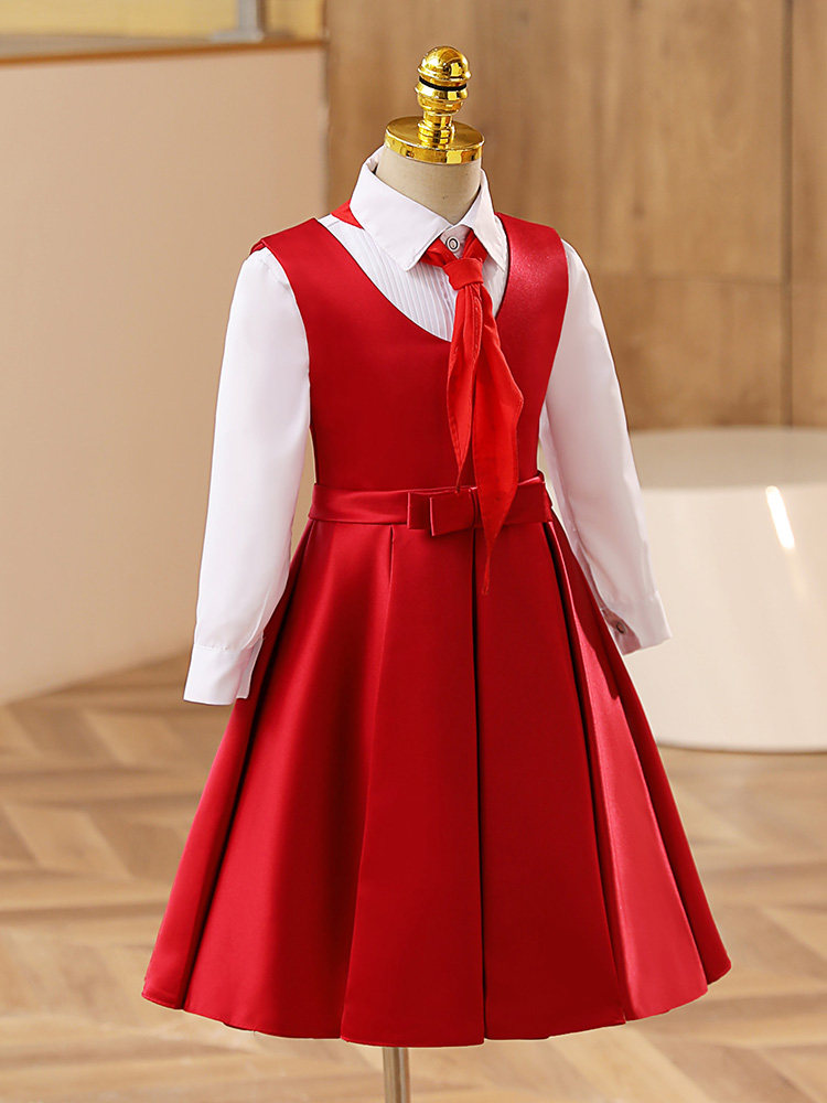 📚 六一儿童合唱演出服中小学生大合唱团中国红女童歌唱朗诵演讲比赛