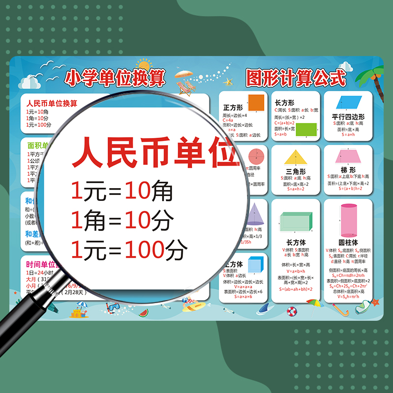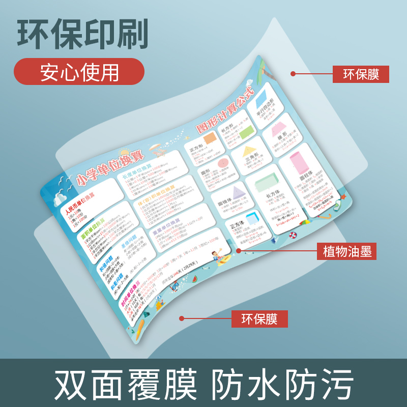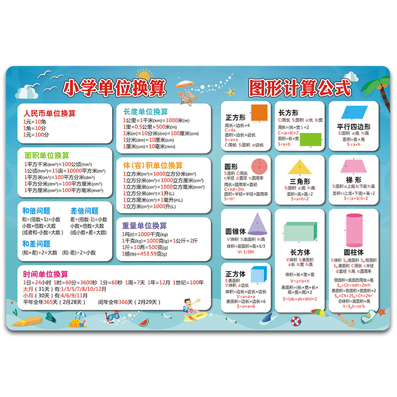 📚 小学生数学公式大全墙贴单位换算挂图儿童平面图形面积知识计算表