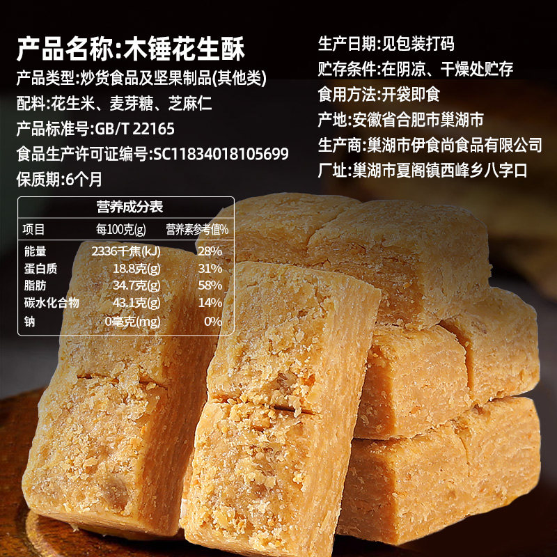 📚 安徽正宗老式木锤花生酥糖官方旗舰店手工制作无糖无添加年货零食