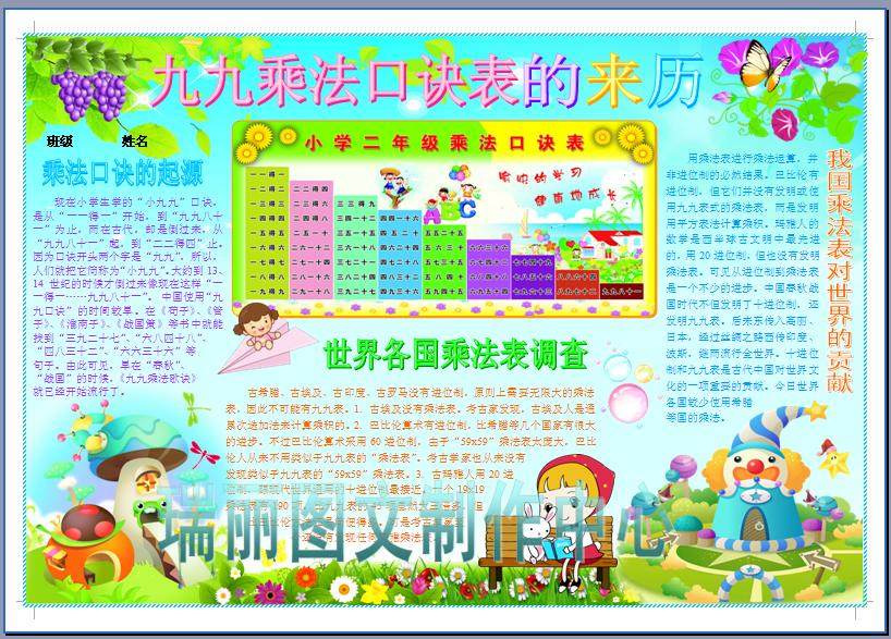 📚 九九乘法口诀表的来历数学电子小报成品电脑手抄报板报画报模板69