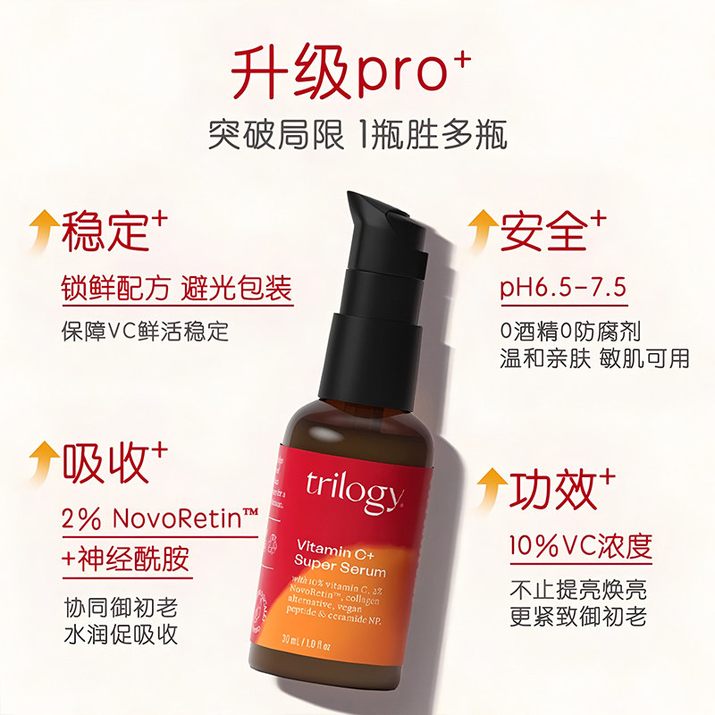📚 新西兰进口trilogy萃乐活10%VC超级精华液维C保湿抗氧修护亮肤PRO