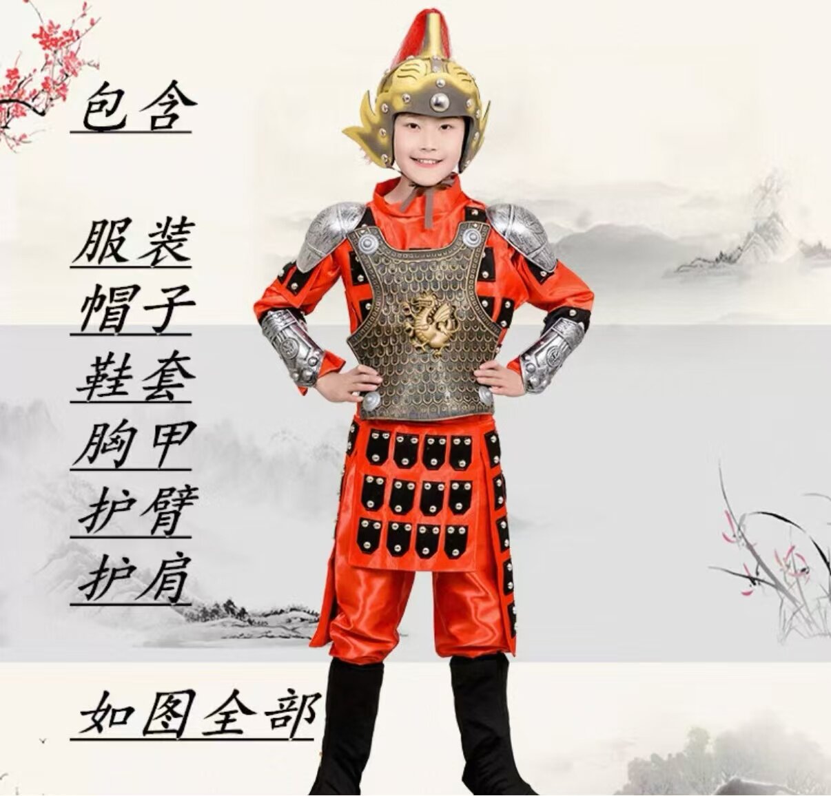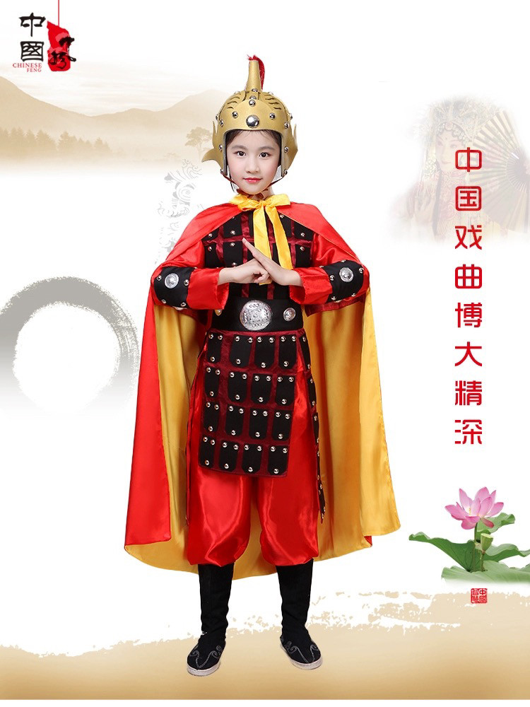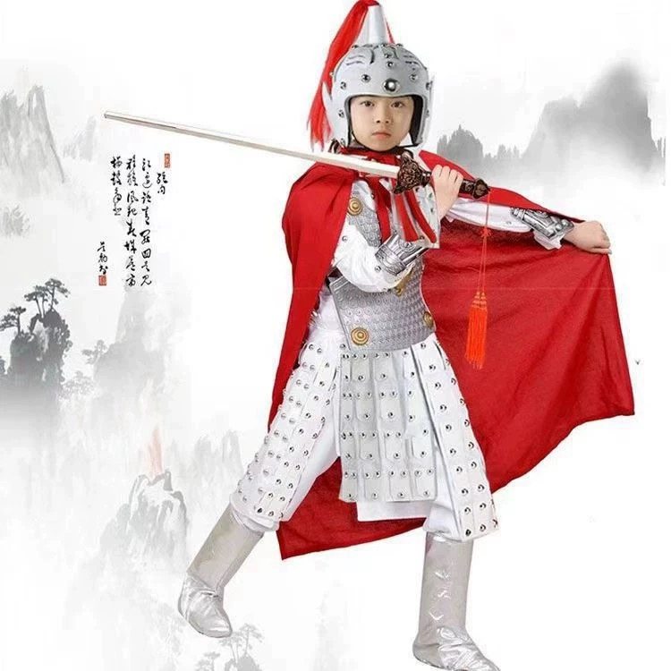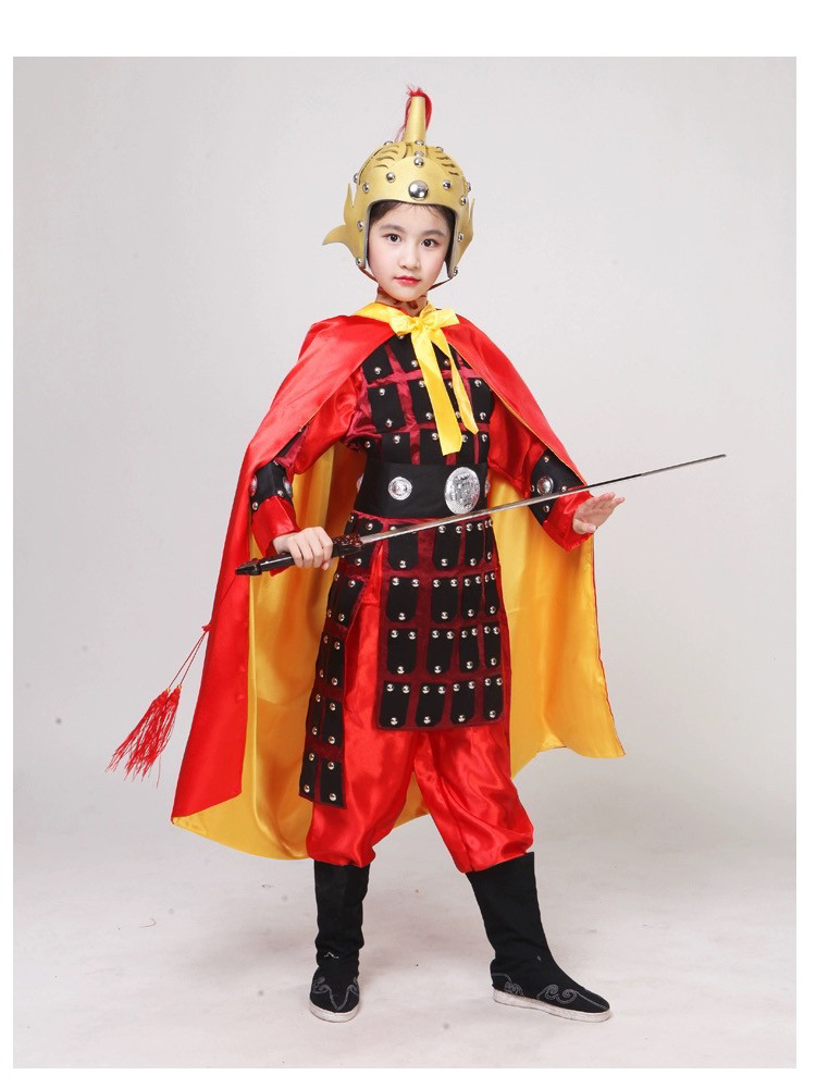 📚 出租儿童古代将军岳飞盔甲演出服杨家将花木兰古装战袍士兵表演服