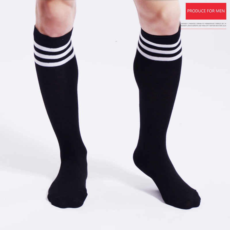 📚 北山男中筒运动袜男条纹白色黑条足球袜休闲韩国男袜中统男袜棉袜