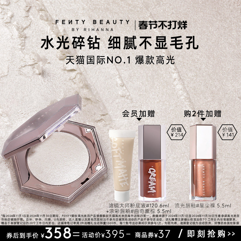 📚 【新年礼物】FentyBeauty蕾哈娜钻石高光粉饼单色珠光爆闪提亮