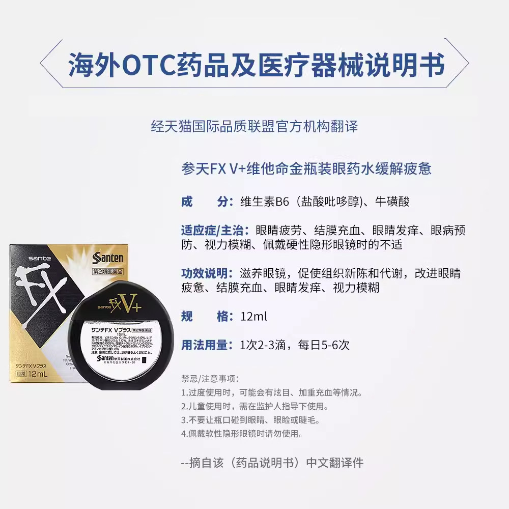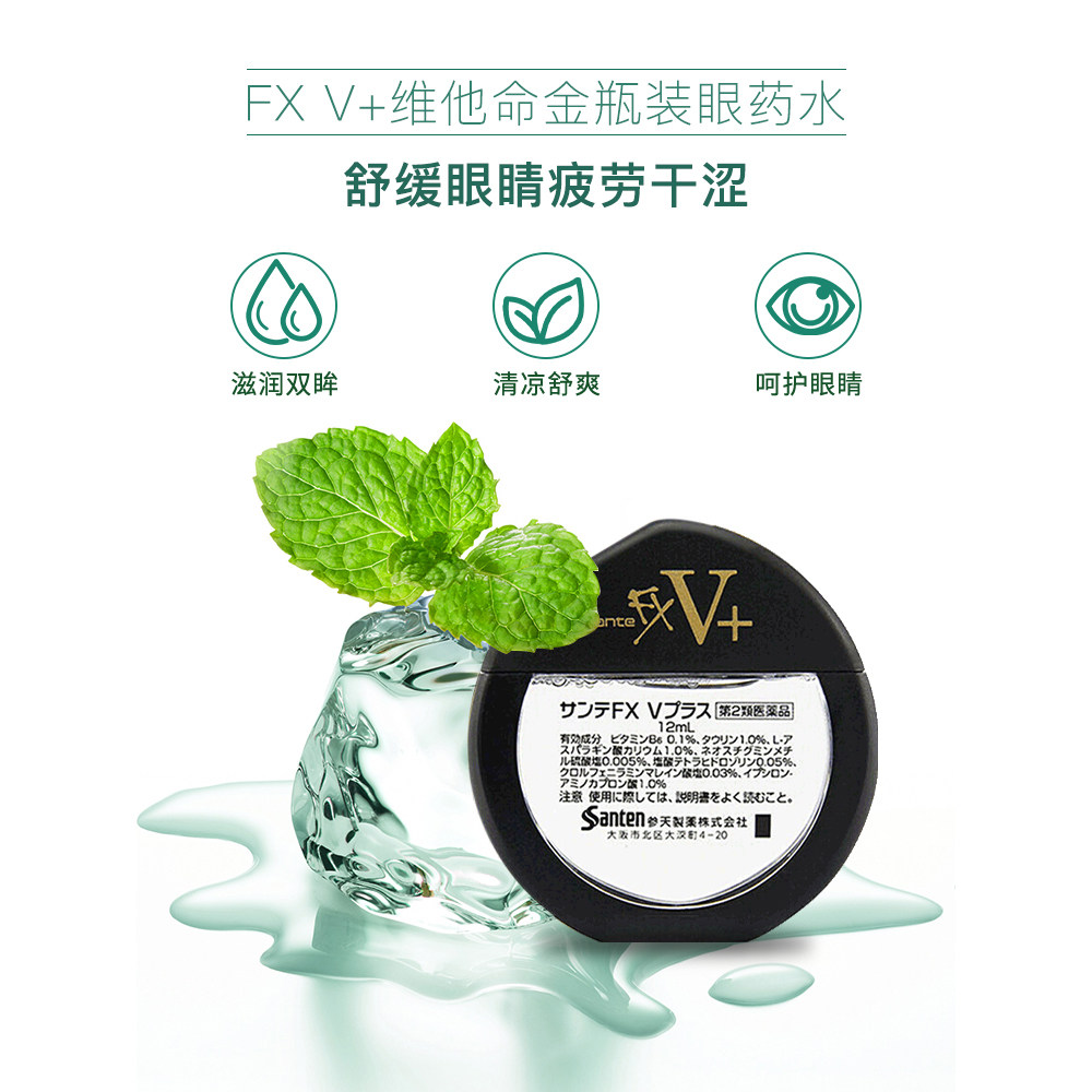 📚 【自营】日本参天FXV+金色瓶装眼药水滴眼液清凉润眼液护眼液12ml