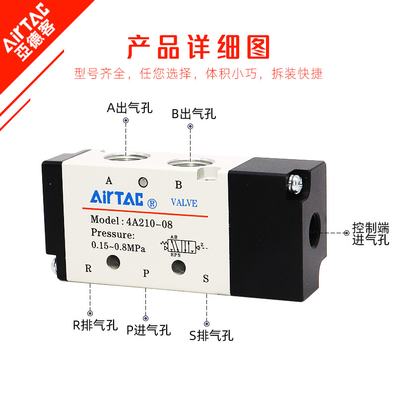 📚 原装亚德客单头气控阀4A210-08二位五通110-06 310-10 410-15气动