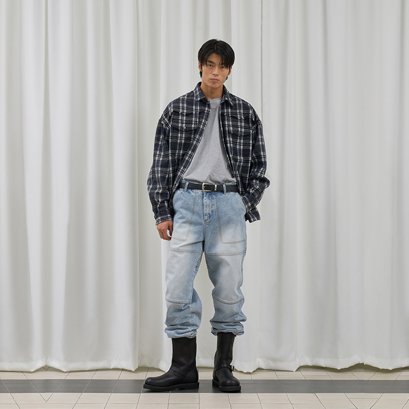 📚 复古水洗 韩国正品 PARTIMENTO 秋新款男时尚宽松牛仔长裤