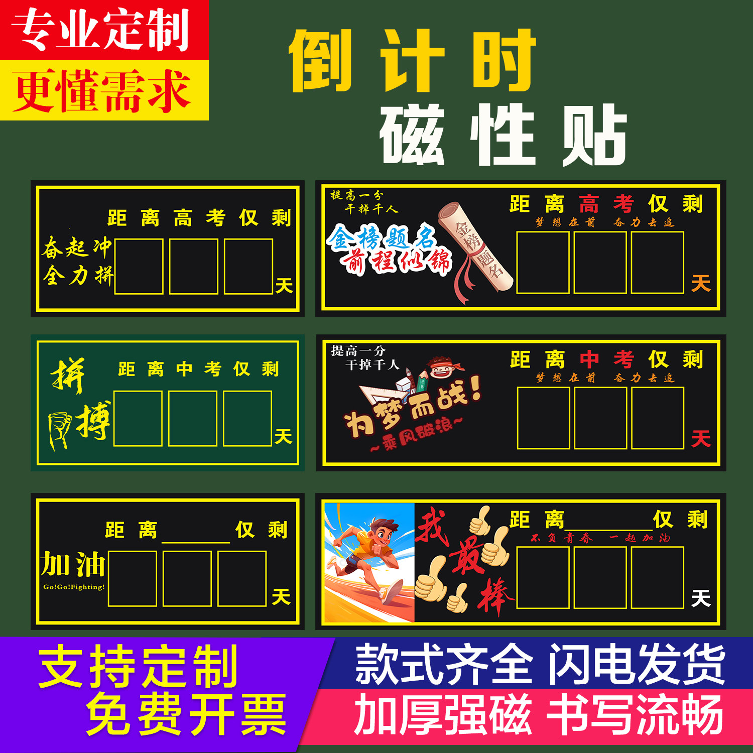 📚 支持定制磁性高考倒计时提醒牌日历中考励志距离倒数天数班级黑板磁力贴考试毕业季磁性应到实到考勤表黑板贴