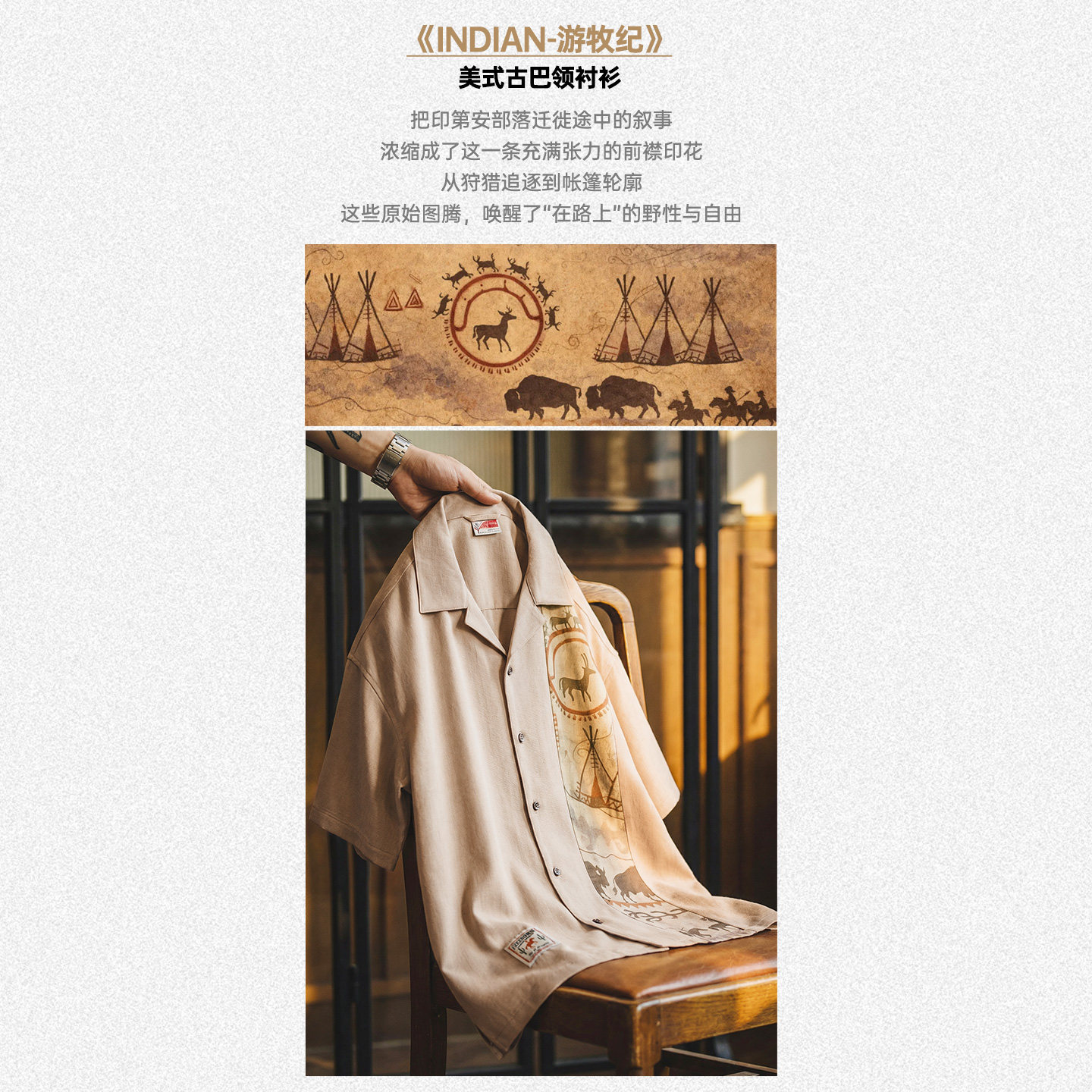 📚 马登工装美式复古印花古巴领衬衫印第安薄款短袖棉衬衣外套男士夏