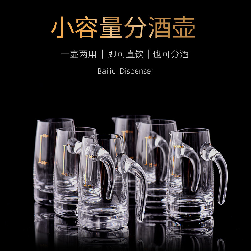 📚 无铅水晶玻璃50ml小号家用带刻度白酒分酒器一两白酒杯带把分酒壶