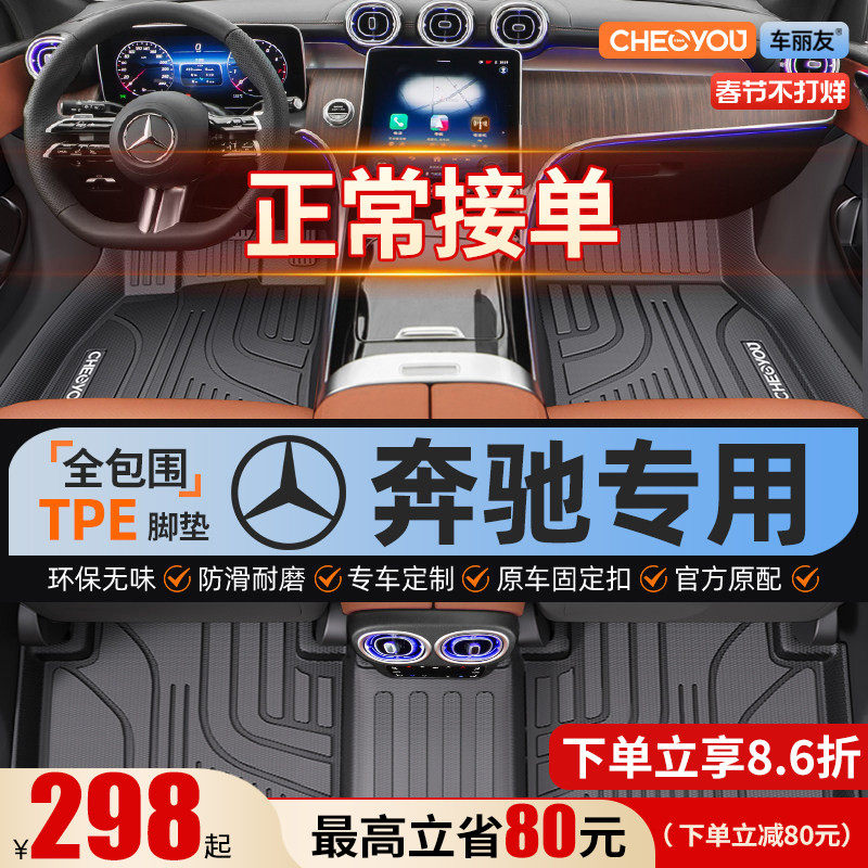 📚 车丽友适用于奔驰C260L E300L GLC260 A200L GLA200全包围TPE脚垫