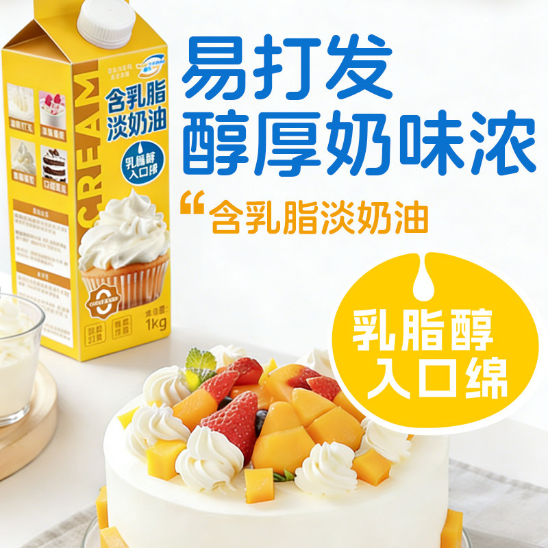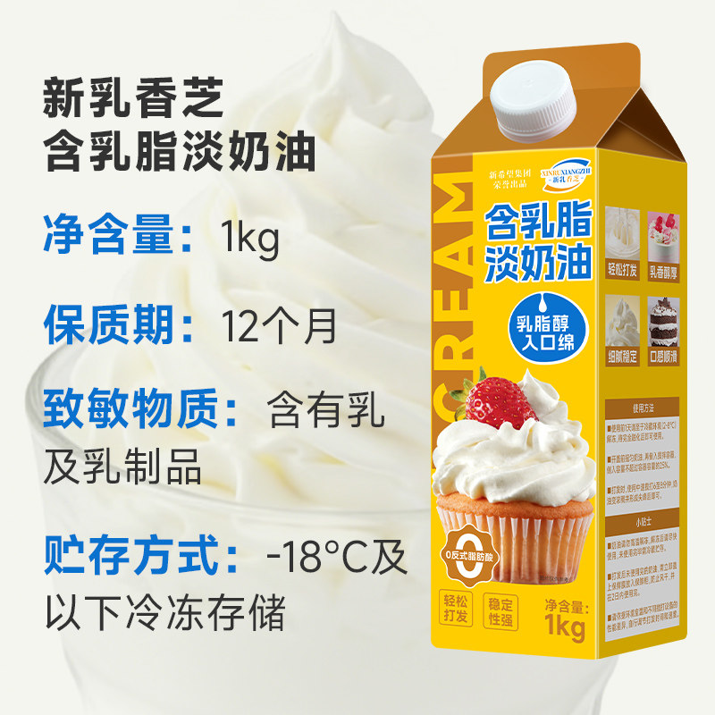📚 新希望新乳香芝1kg动物植物混合淡稀奶油烘焙生日蛋糕裱花商用