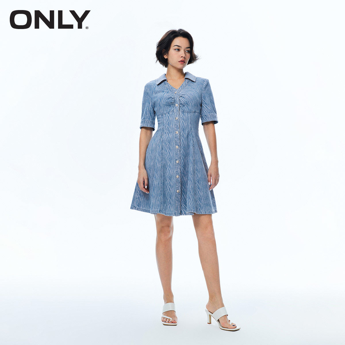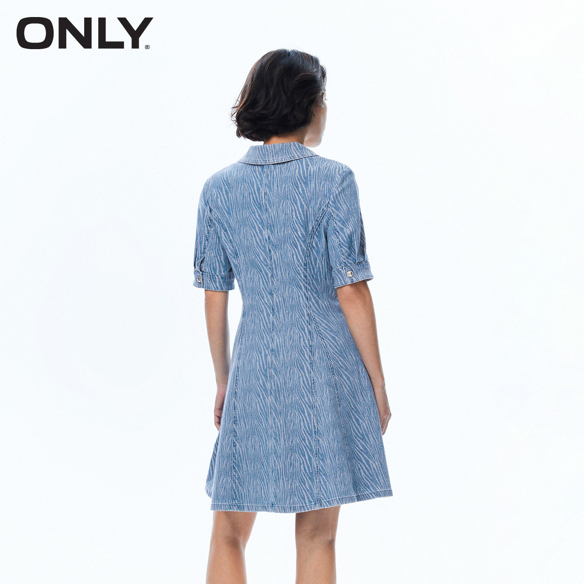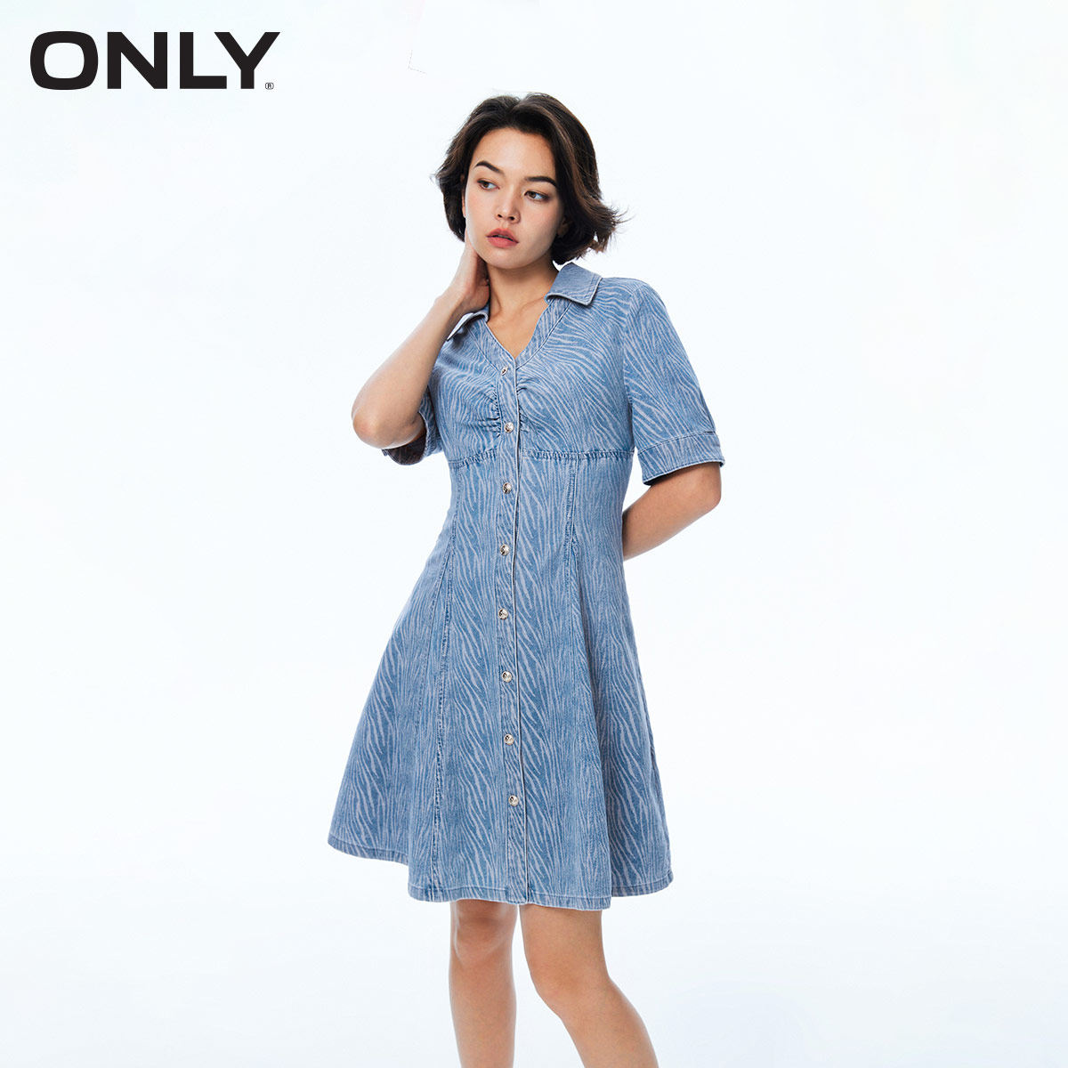 📚 tq区绫致ONLY秋冬新收腰A字复古V领短款牛仔连衣裙女时尚潮