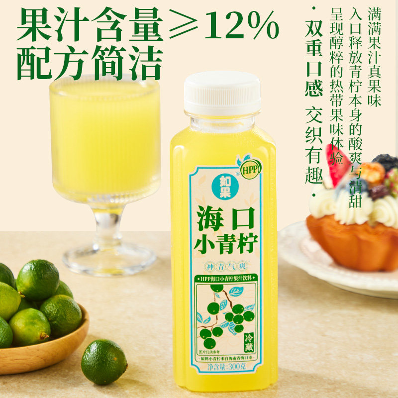 📚 【新品】如果HPP海口小青柠柠檬果汁饮料0添加防腐剂300g/瓶4瓶装