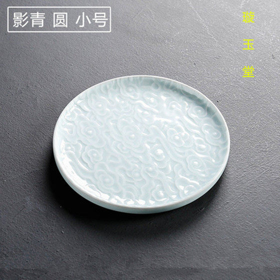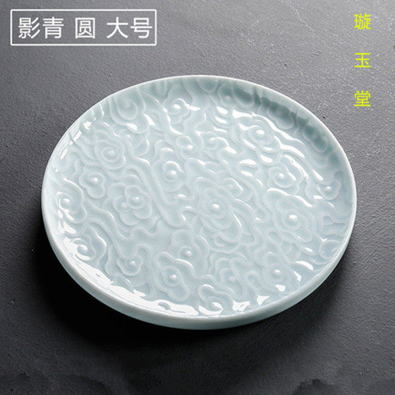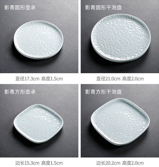 📚 湖田窑青白瓷器浮雕祥云干泡茶道杯壶盖碗托垫茶盘壶承点心果盘