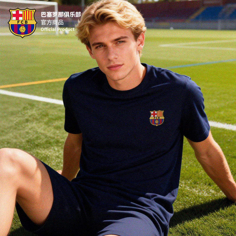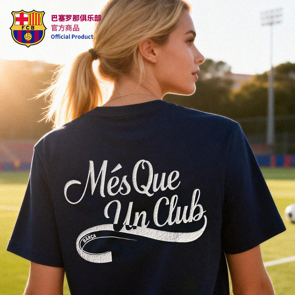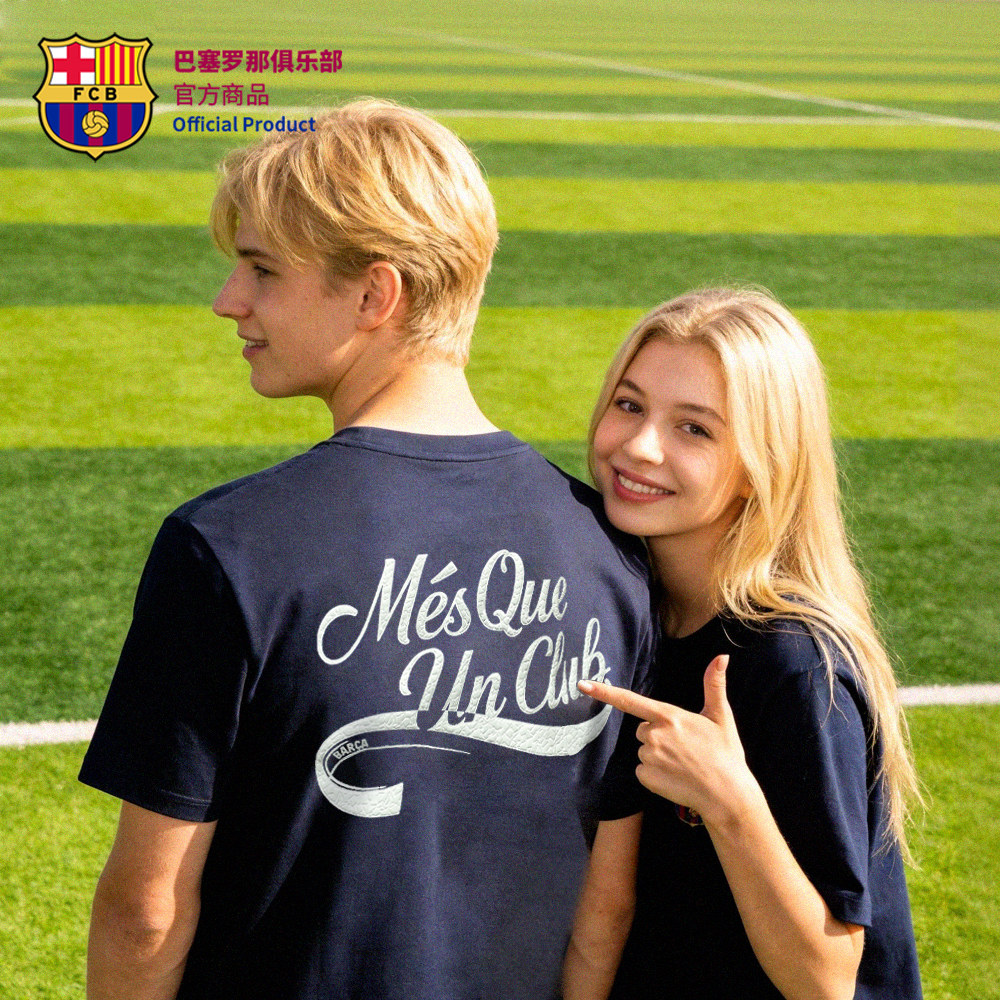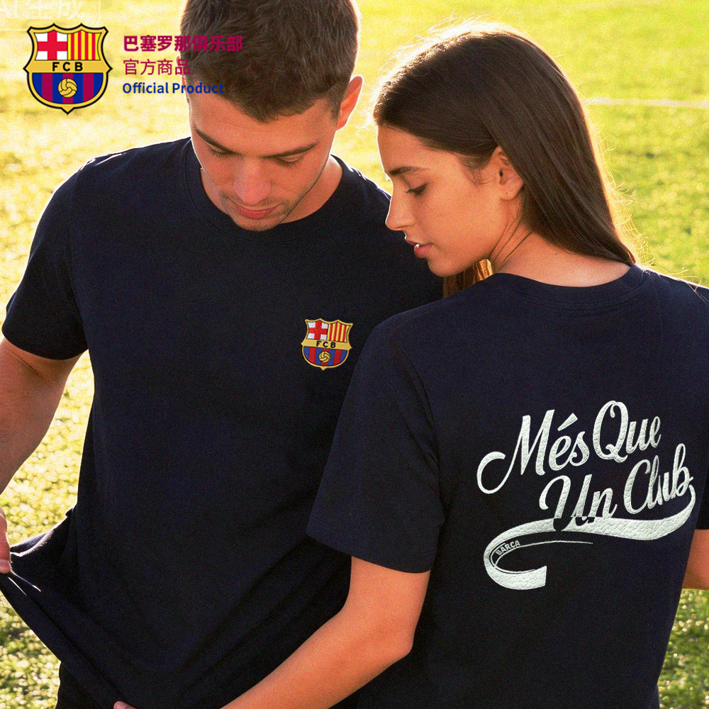 📚 【官方正版】巴塞罗那俱乐部|巴萨深蓝口号T恤舒适透气短袖