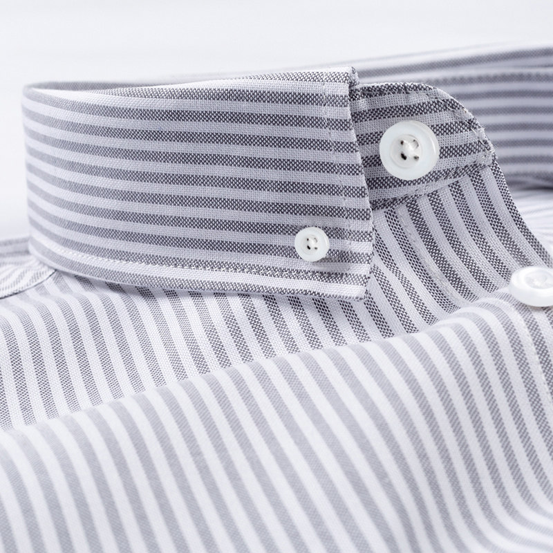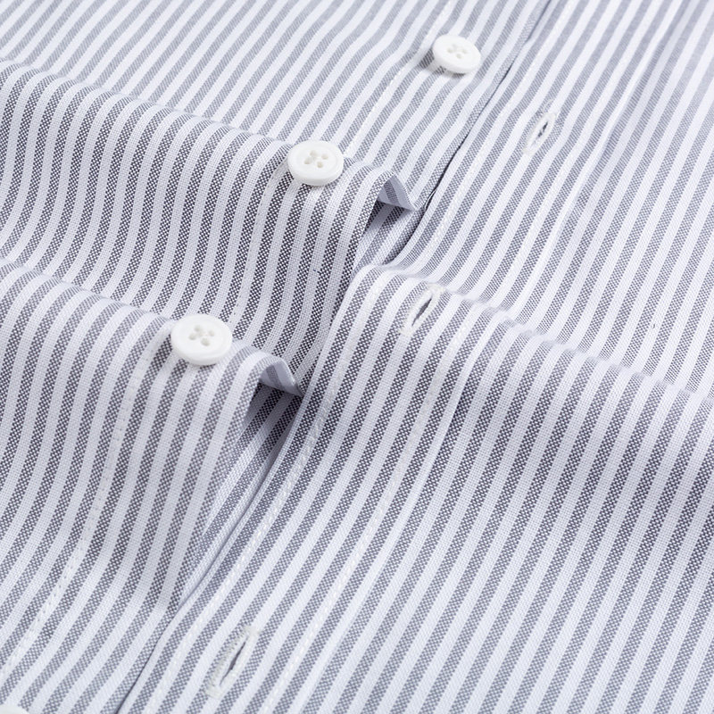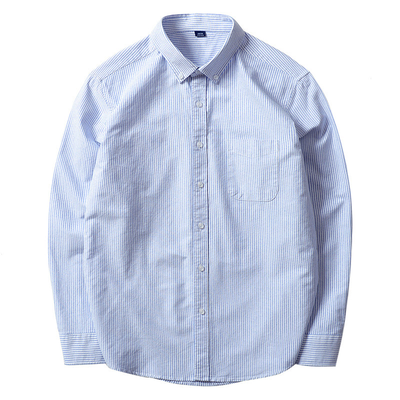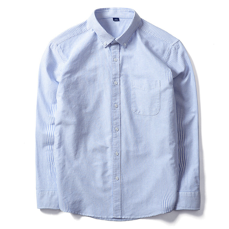 📚 秋季抗皱蓝白竖条纹衬衫男潮纯棉长袖衬衣日系宽松全棉直格纹寸衫