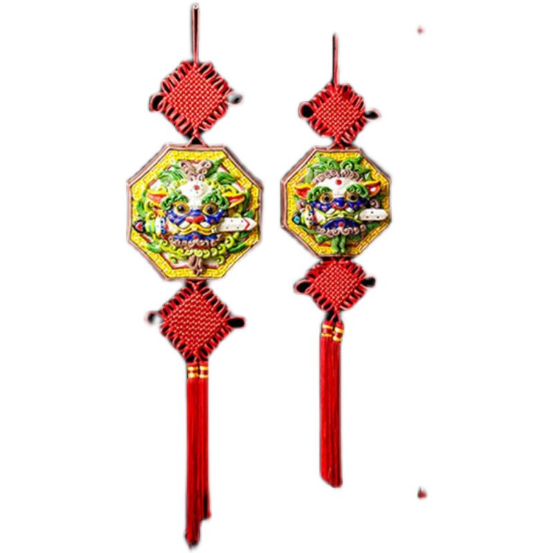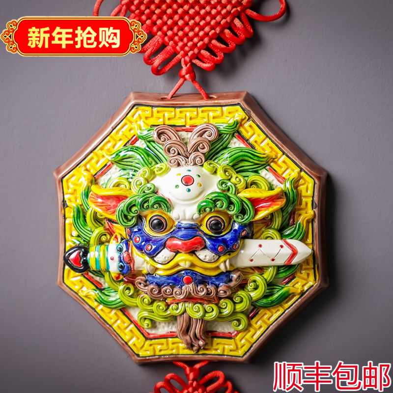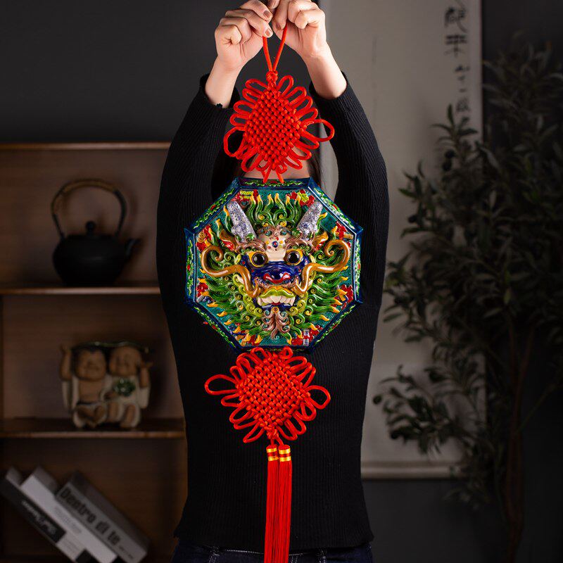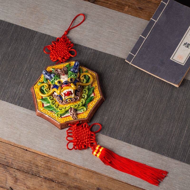 📚 中式手办龙挂件陶瓷客厅装饰品彩陶交趾陶咬剑狮子纳福墙壁挂饰