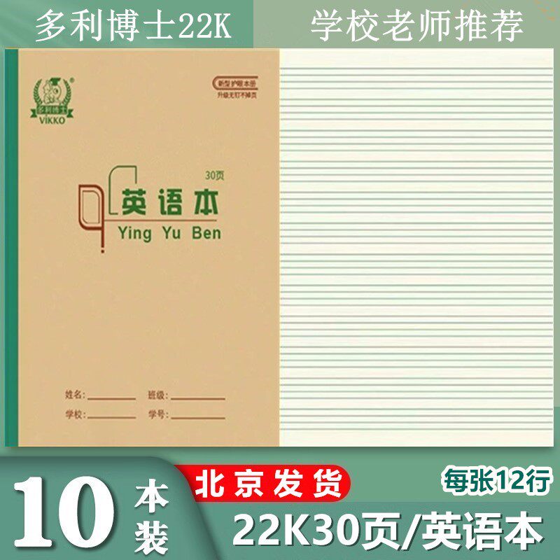 📚 多利博士22K英语本30页英文本小学生初中生统一加厚双线本数学本