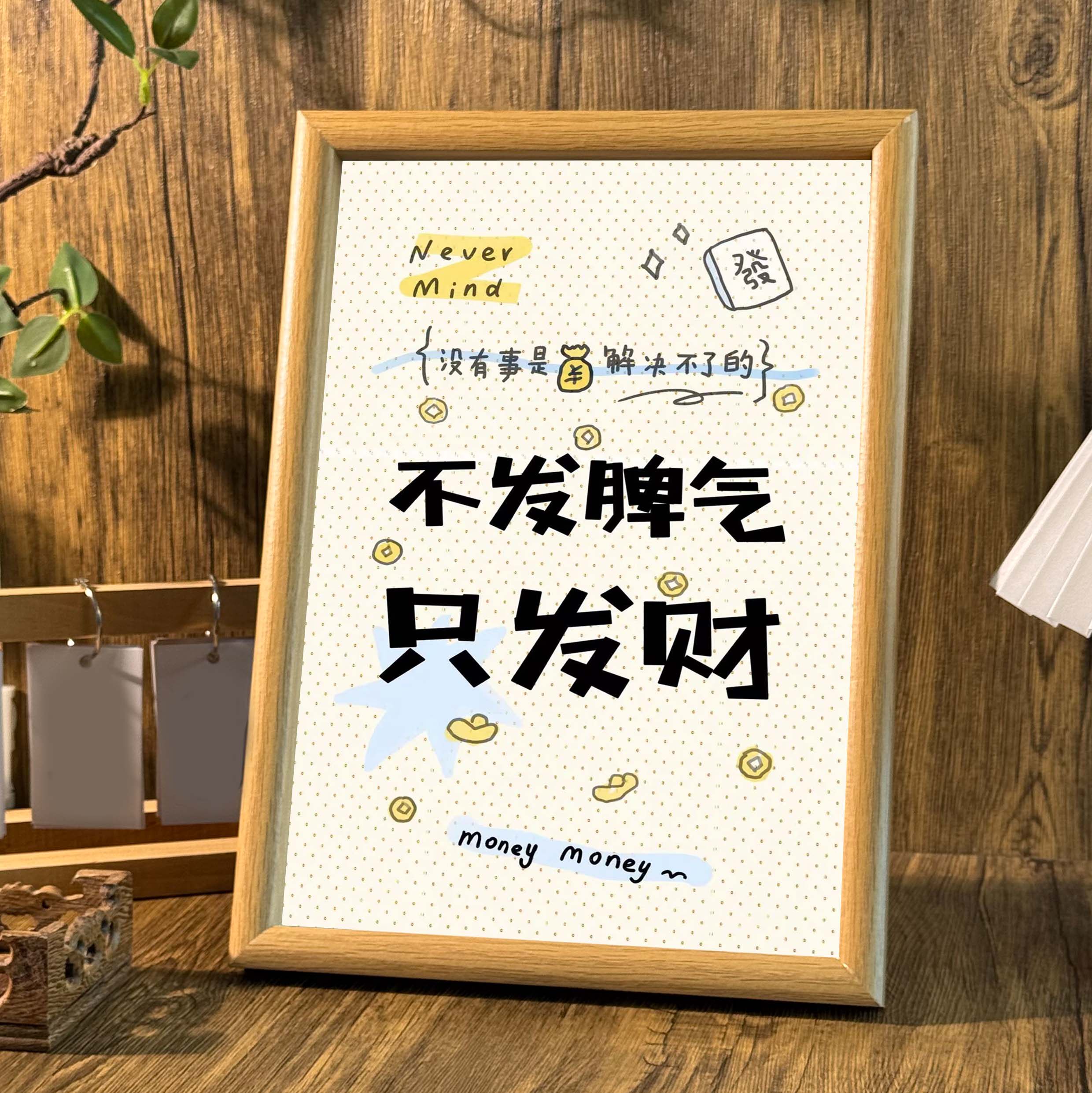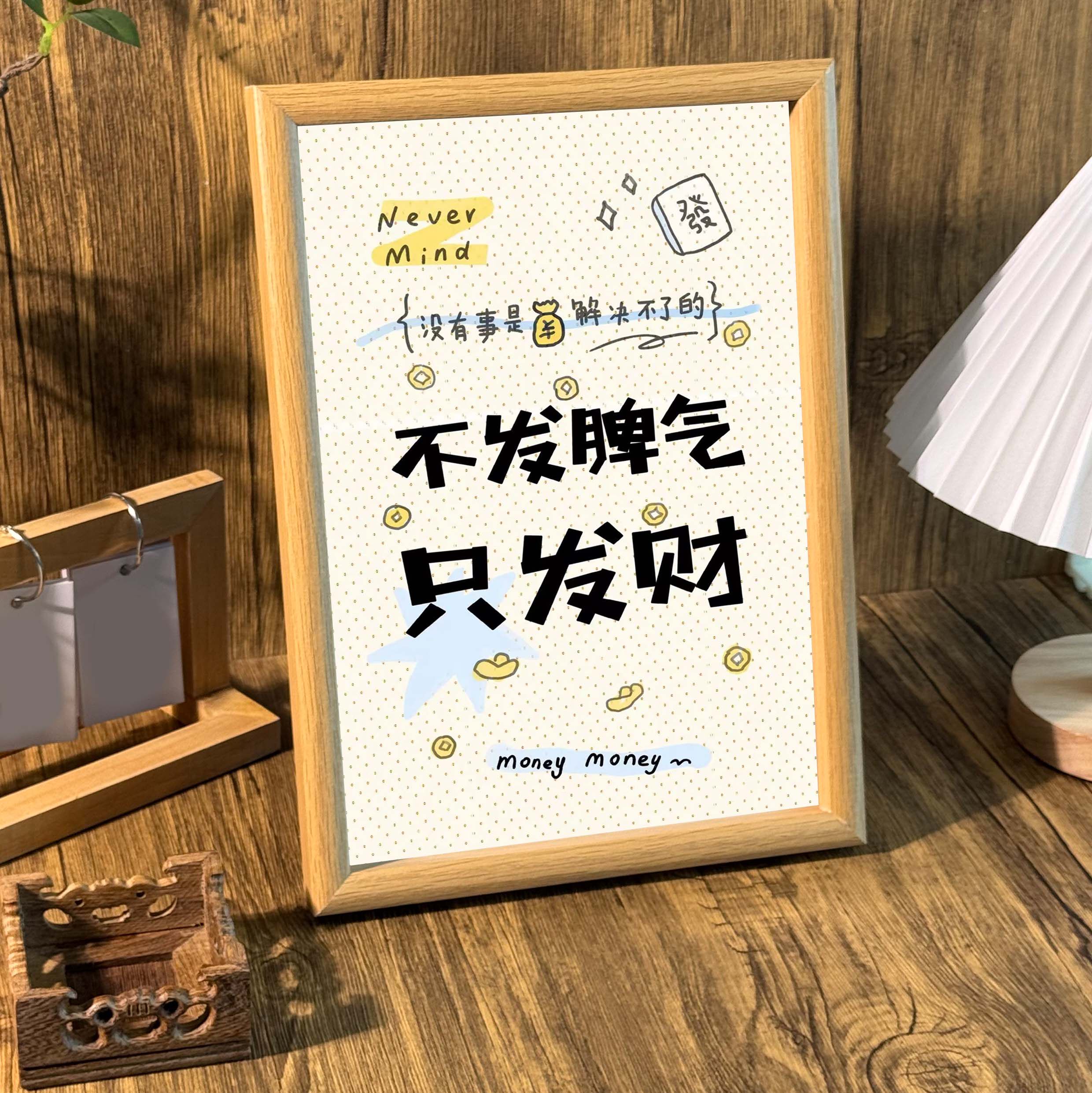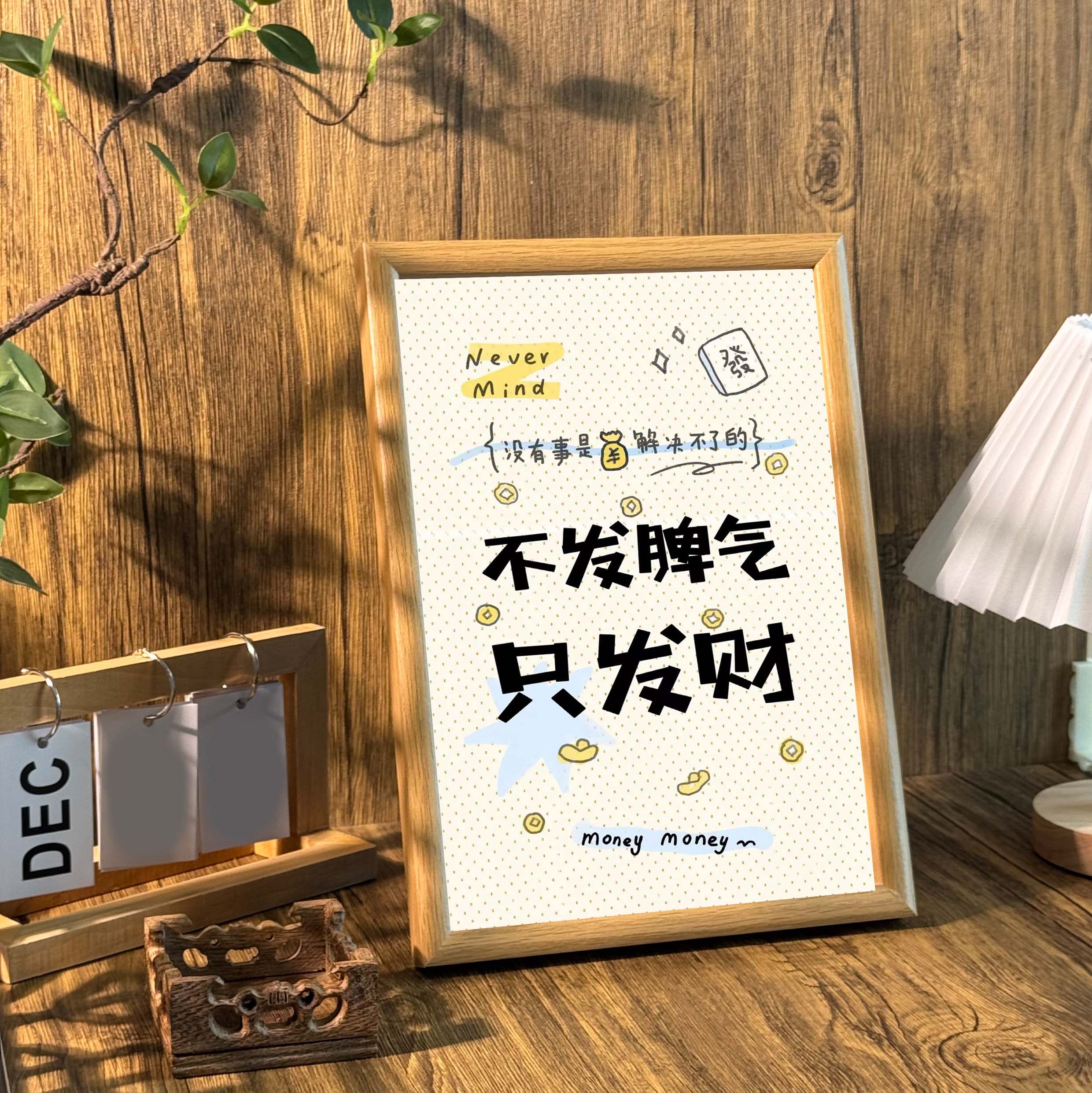 📚 不发脾气只发财桌面治愈系文字相框客厅玄关摆台送礼宿舍装饰挂画