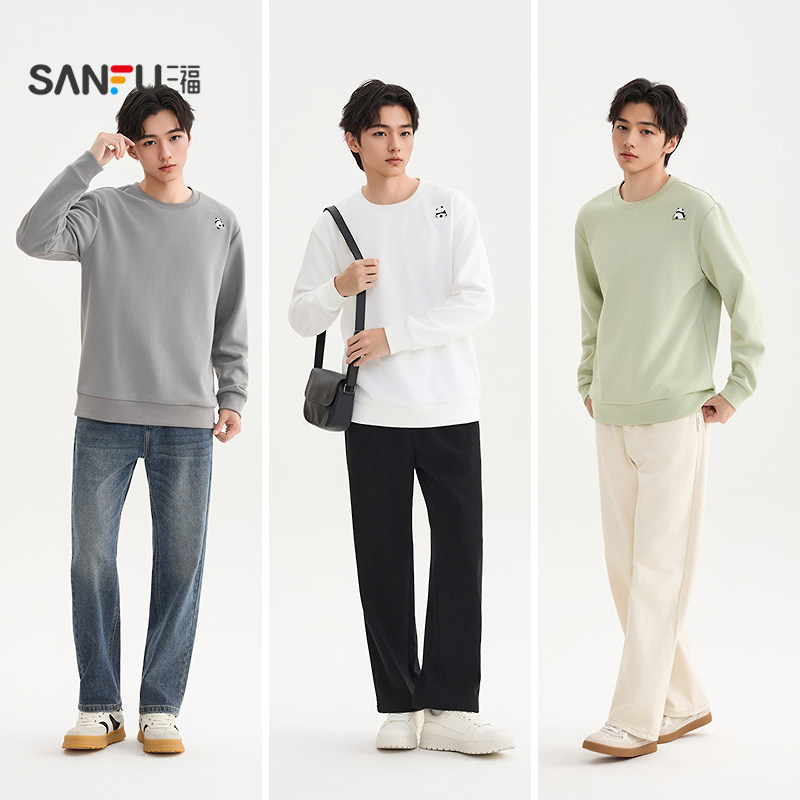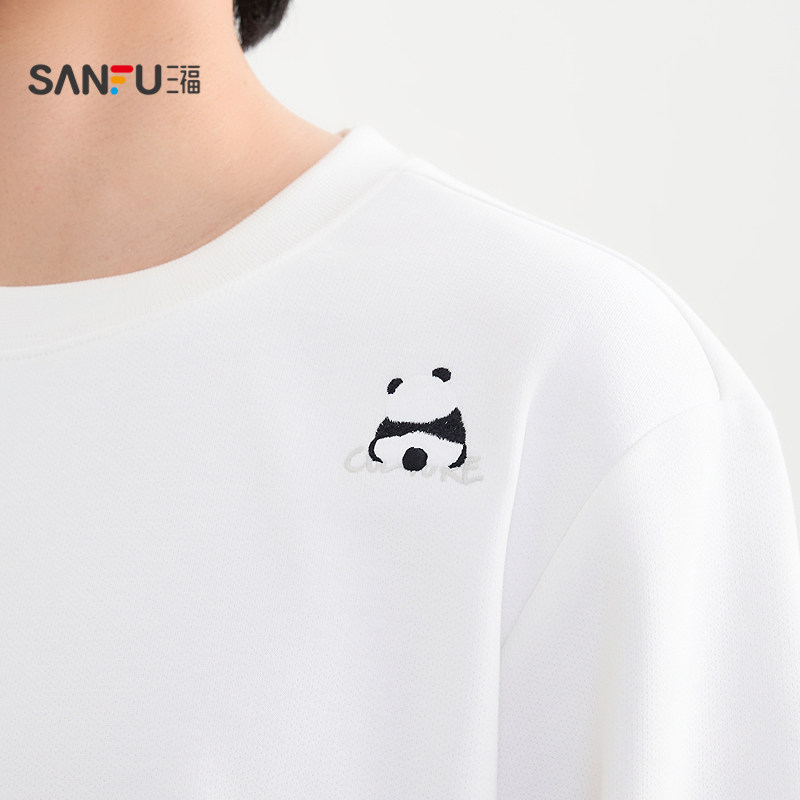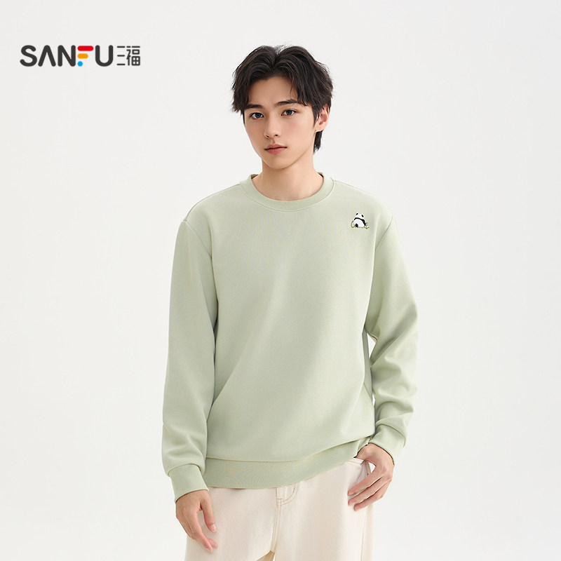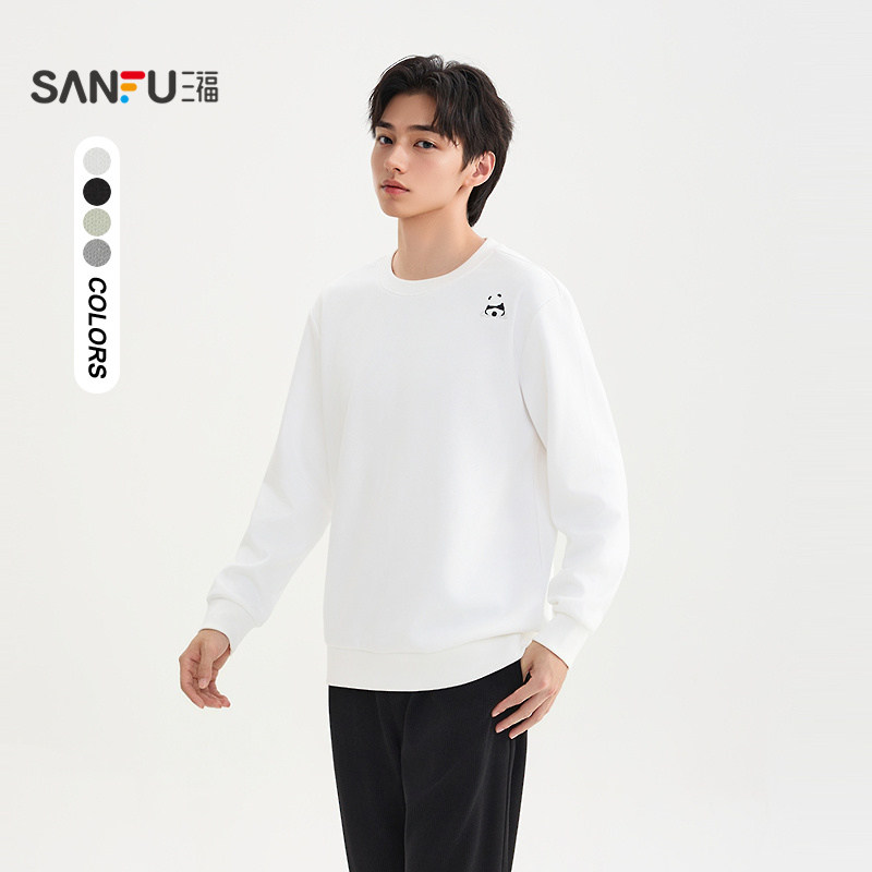 📚 三福2025冬季男士异位熊猫刺绣卫衣 宽松圆领上衣509998