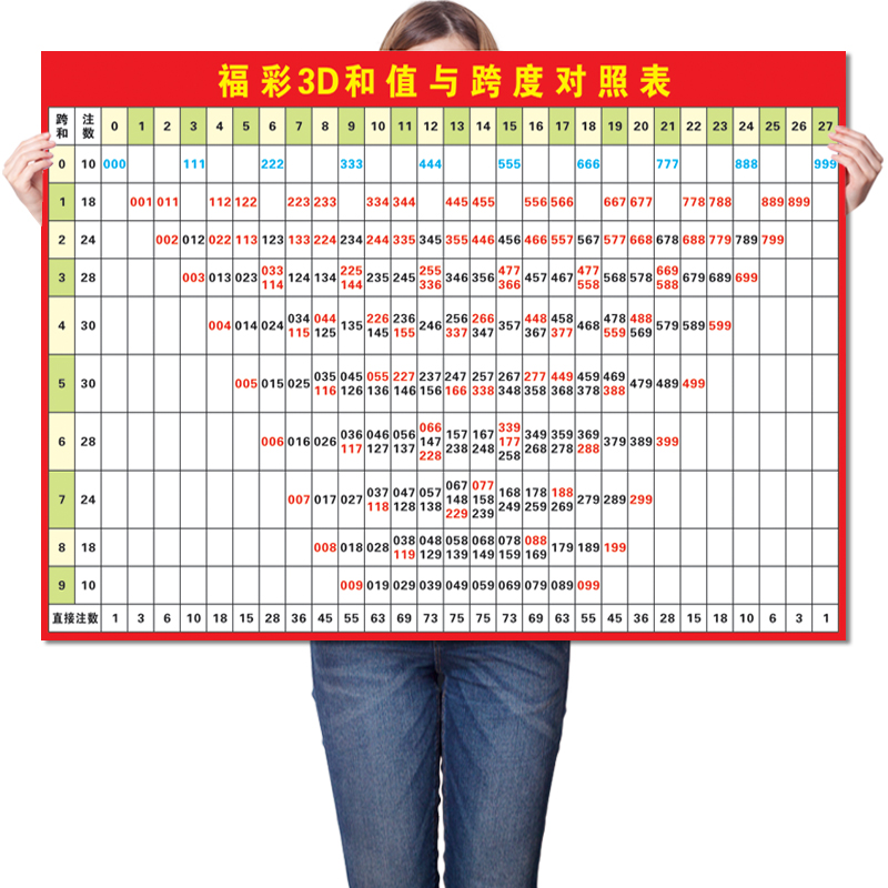 📚 福彩3D和值与跨度对照表3d游戏和数值号码分区表走势图广告贴纸