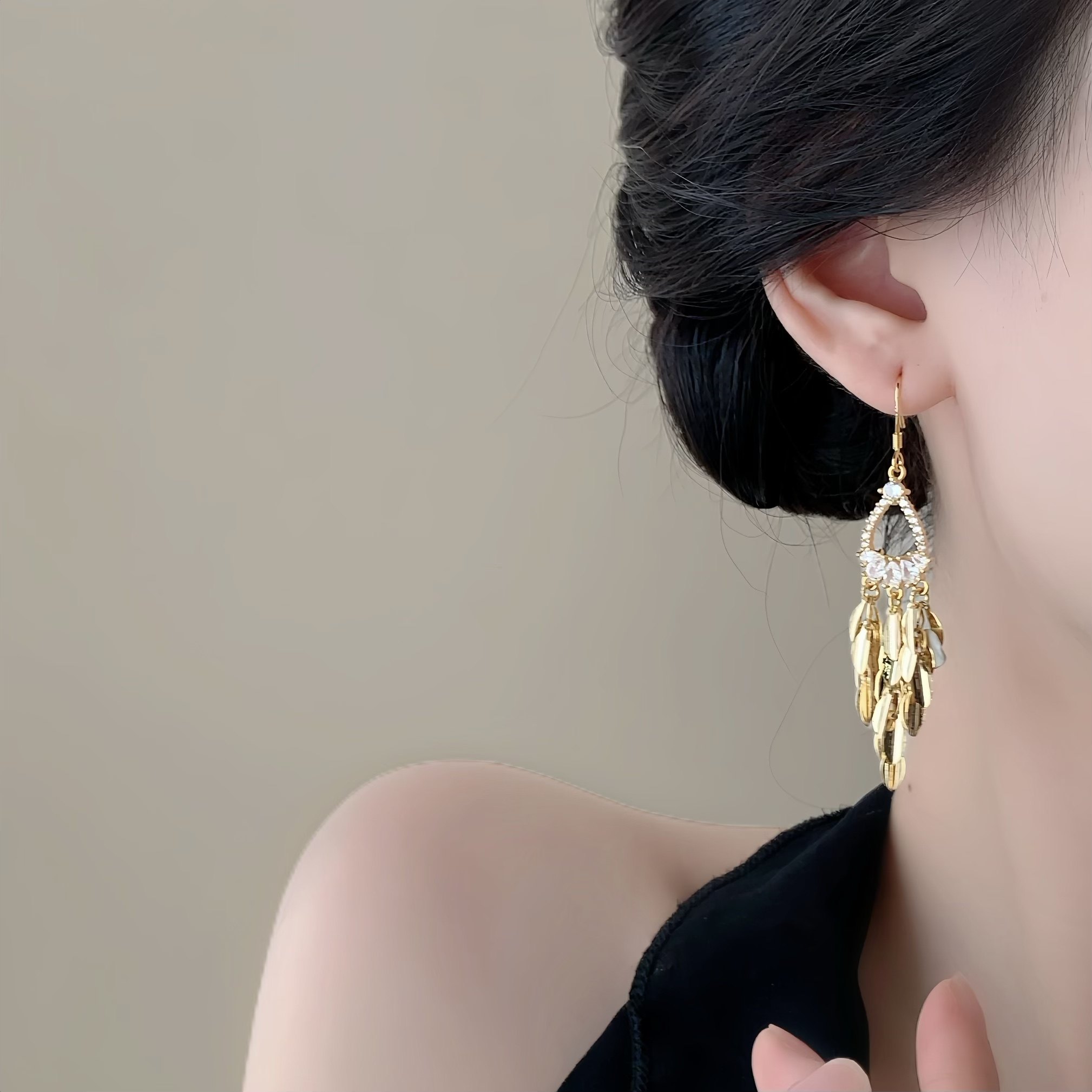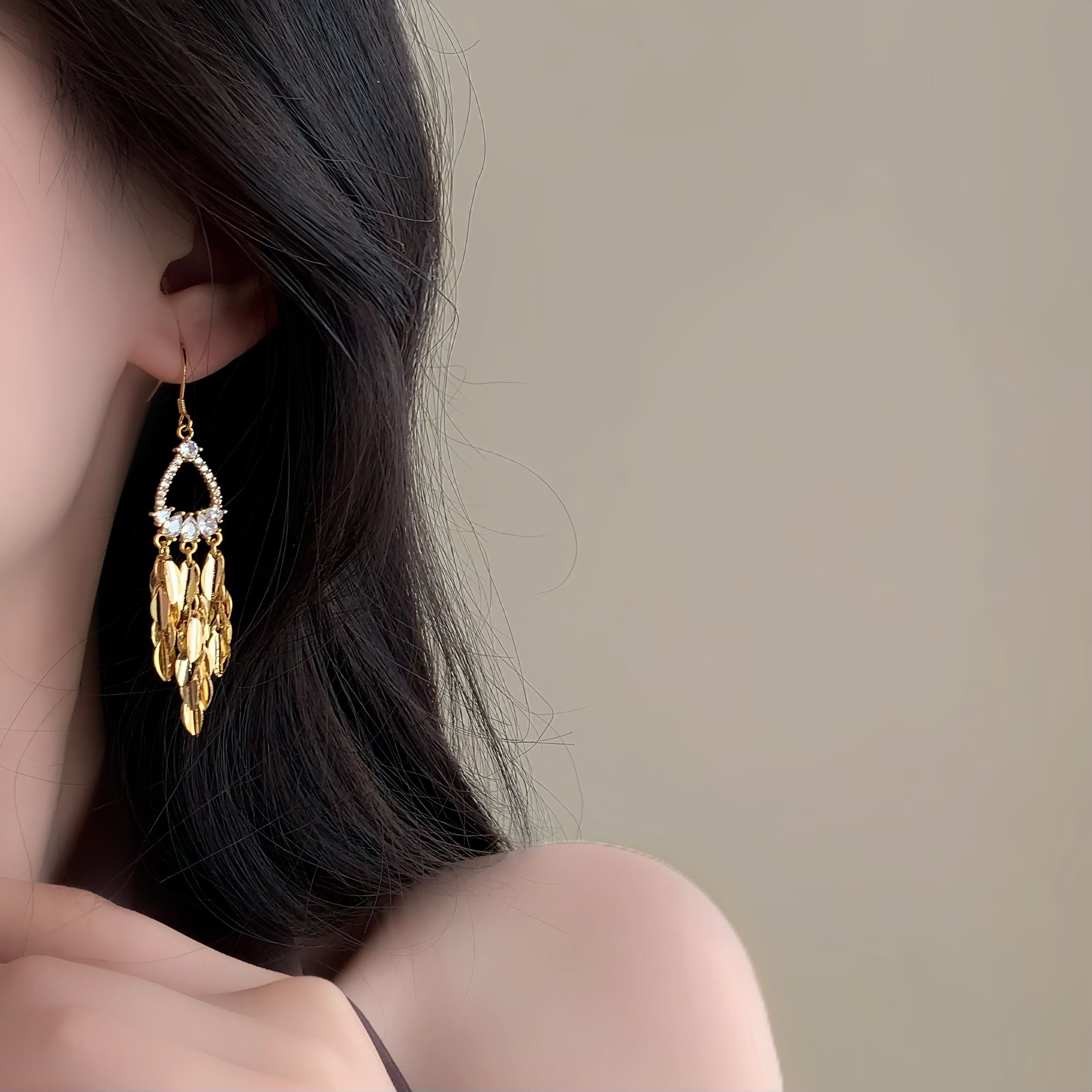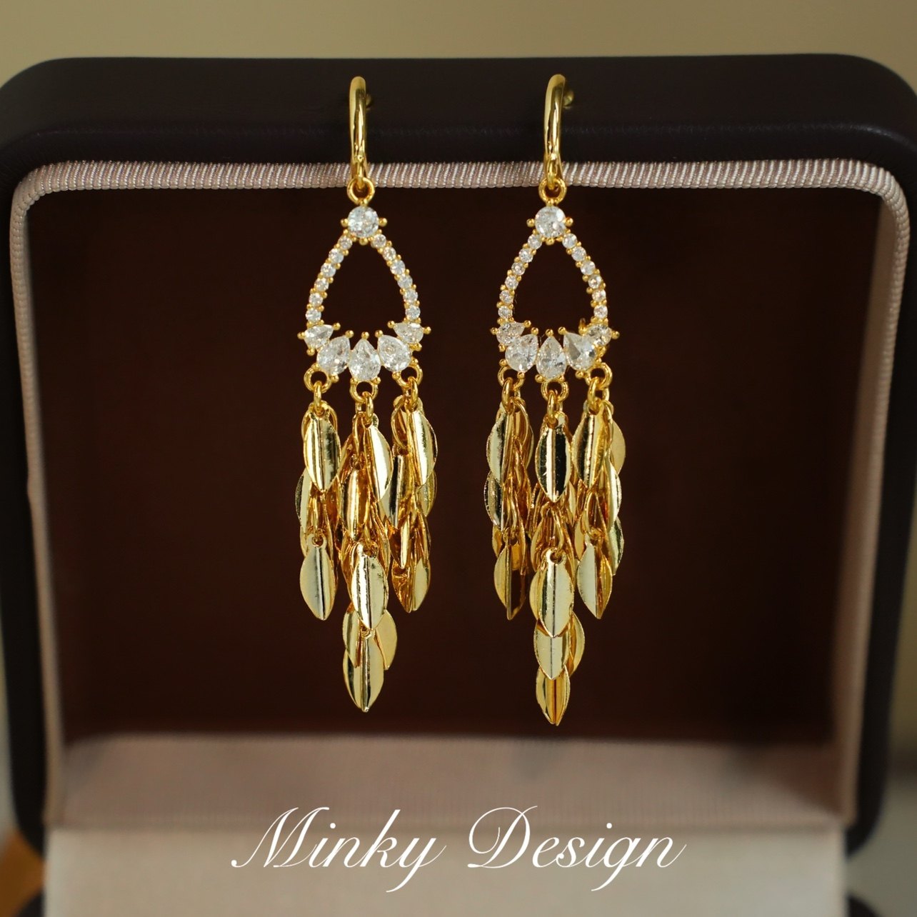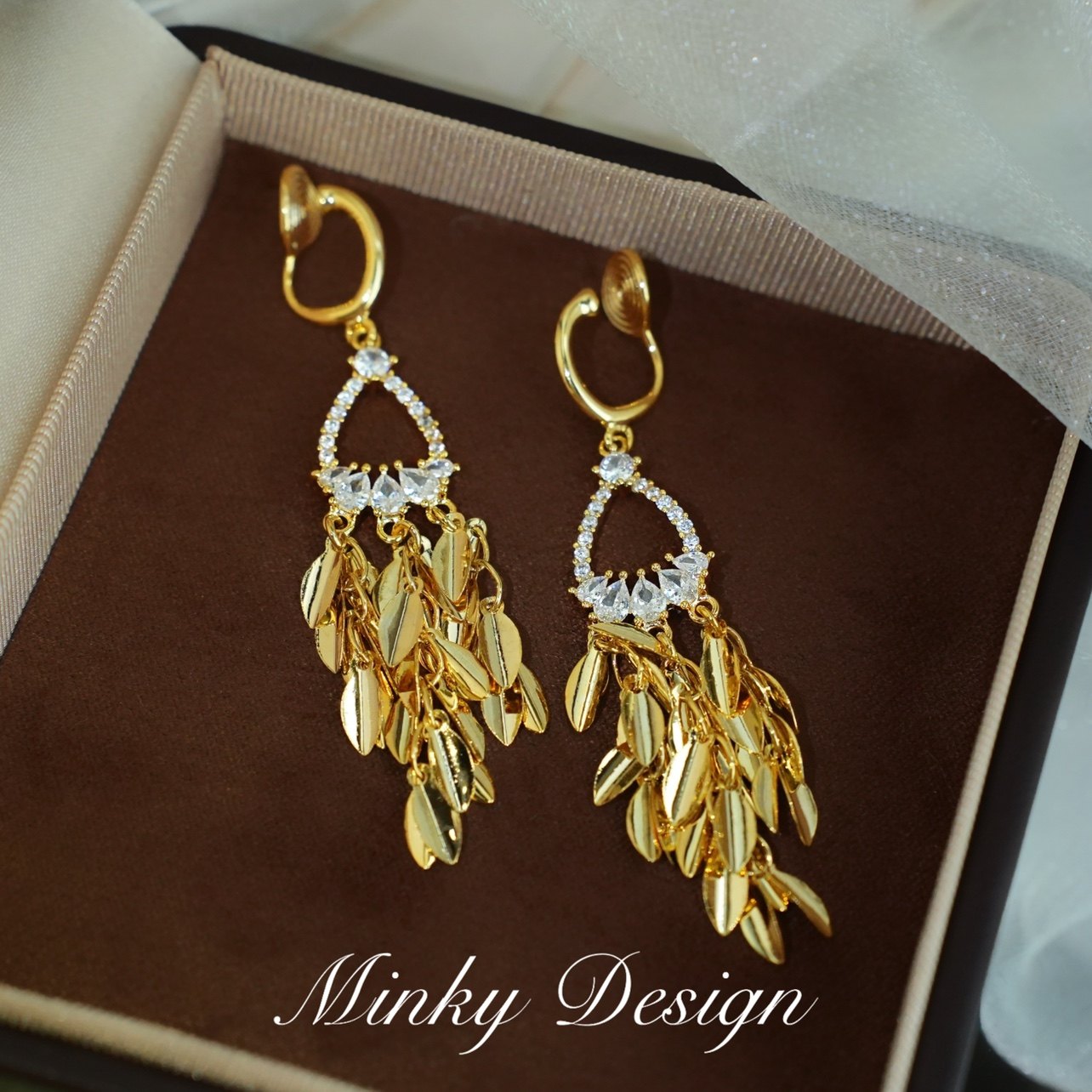 📚 「金棠月」金色流苏树叶耳饰蚊香盘耳夹无耳洞耳钉高级秋冬耳环女