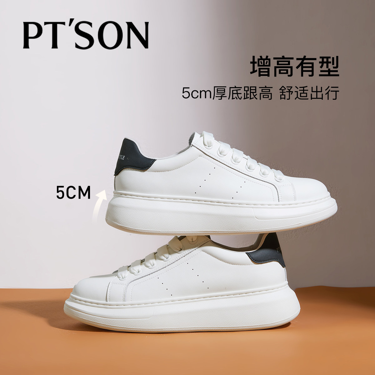 📚 商场同款百田森小白鞋男款2025新款休闲男鞋增高真皮板鞋厚底鞋男