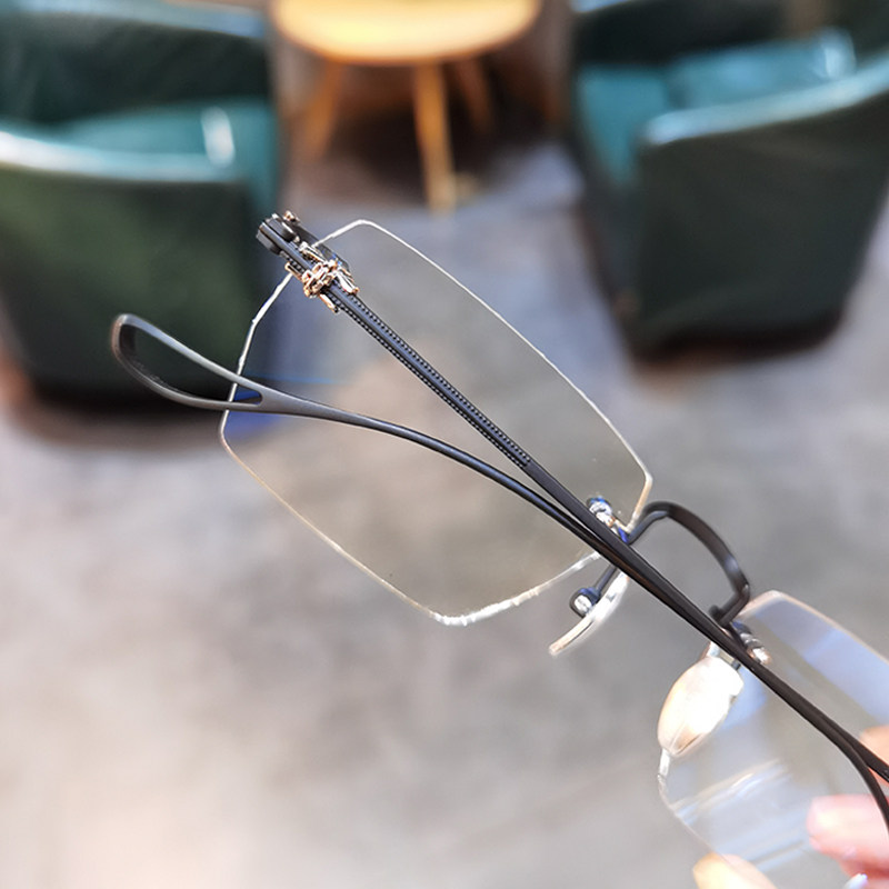 📚 简丹剋萝心无框近视镜潮纯钛超轻男女时J尚斯文败类多边素颜平光