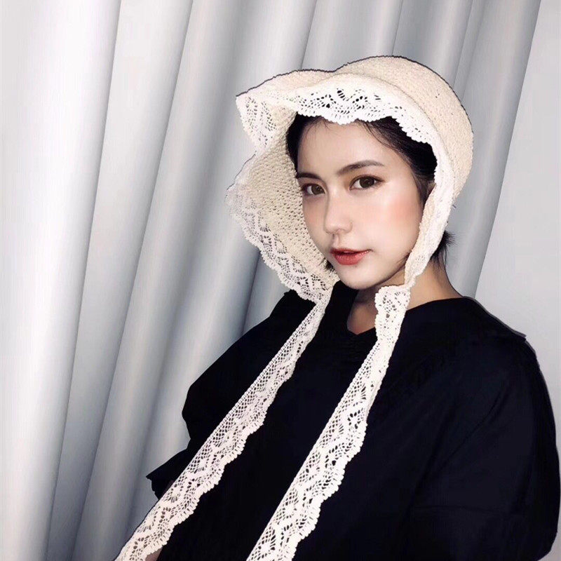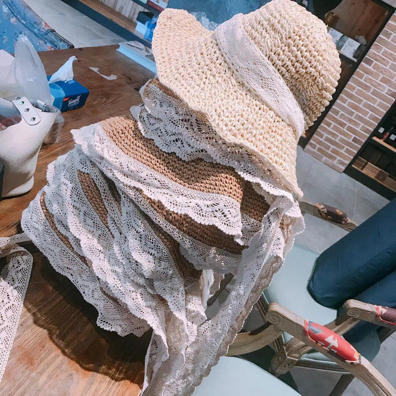 📚 夏天沙滩帽蕾丝草帽女系带遮阳帽防晒旅游度假帽子夏季太阳帽海边