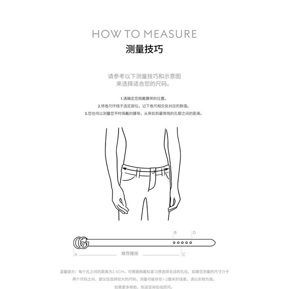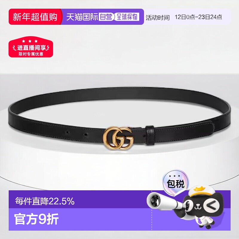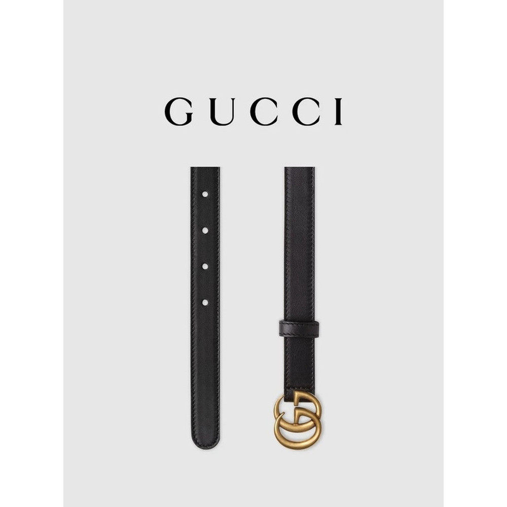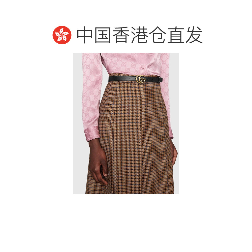 📚 香港直邮GUCCI古驰 互扣式双G针扣皮革皮带女款腰带 2cm黑色宽