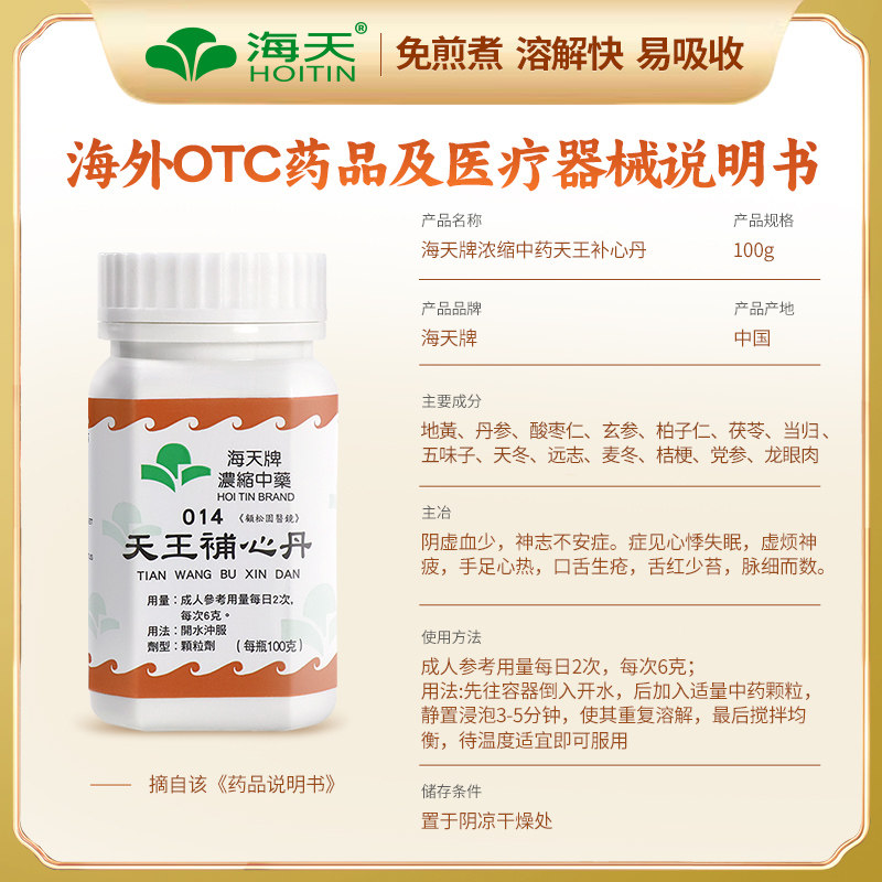 📚 香港海天牌天王补心丹浓缩中药颗粒免煮中成药汉方药补心安神滋阴