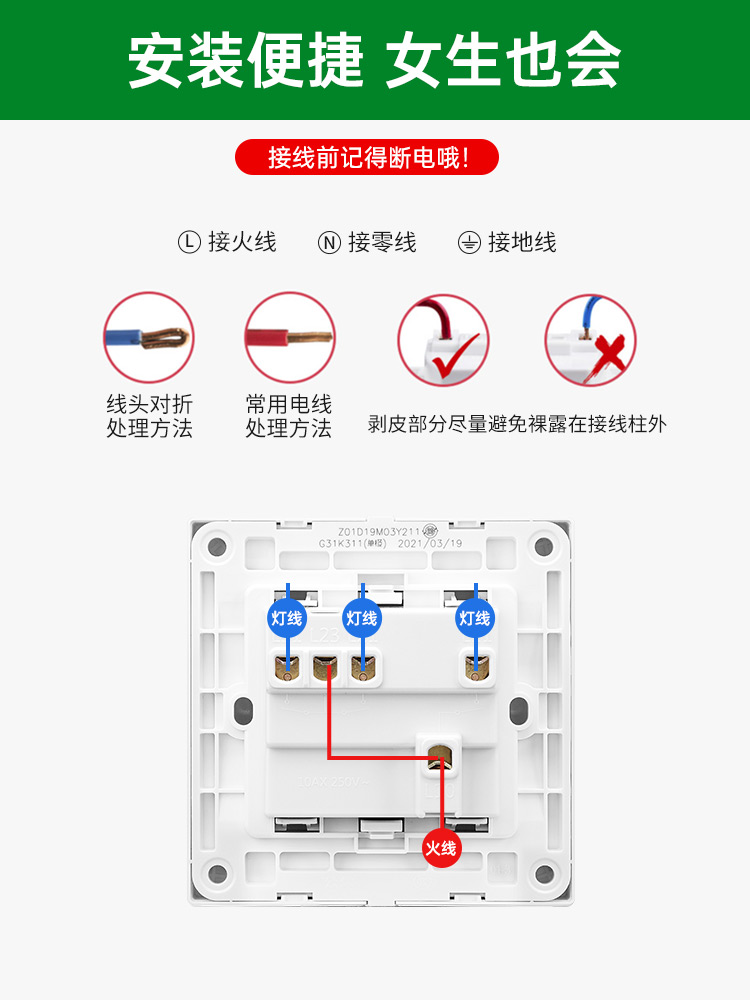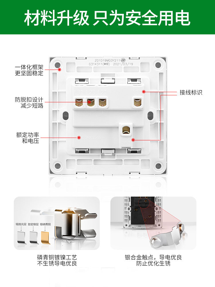 📚 公牛三开单控墙壁开关按钮 面板86型三联三控三位3控家用双控插座