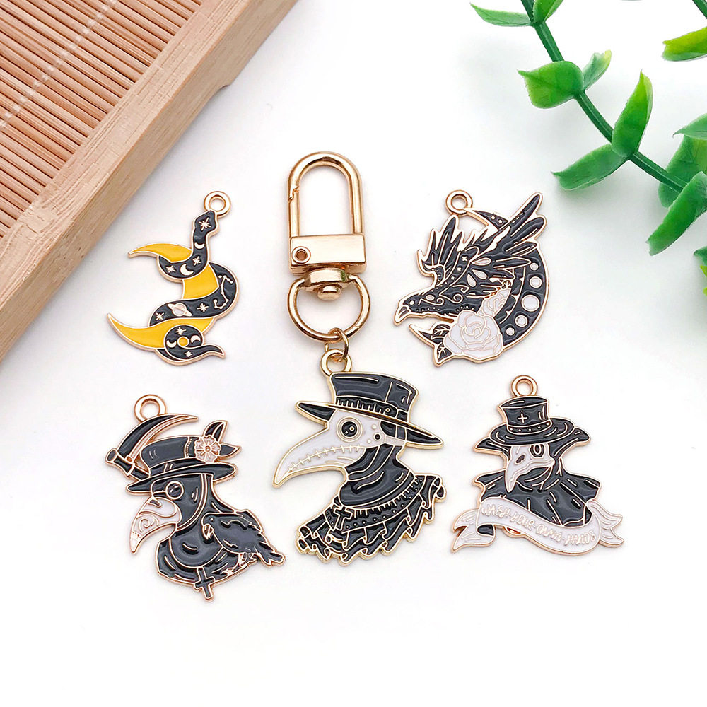 📚 万圣节骷髅乌鸦小鸟暗黑系列DIY滴油饰品配件手链钥匙链吊坠挂件