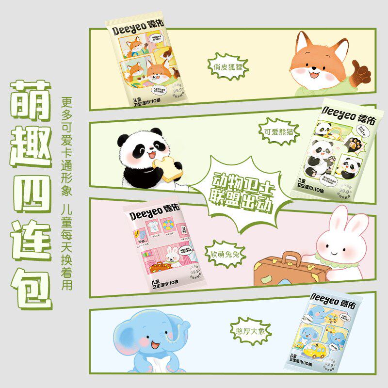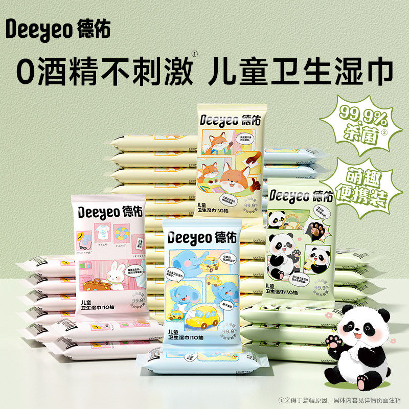 📚 德佑消毒湿巾纸小包便携式10包装学生儿童专用卫生杀菌非酒精湿巾