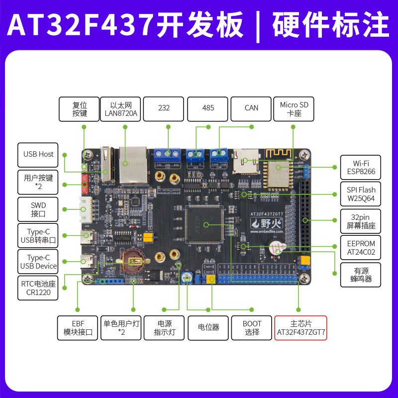📚 野火雅特力AT32F437ZGT7开发板 Cortex-M4内核288MHz 百兆以太网