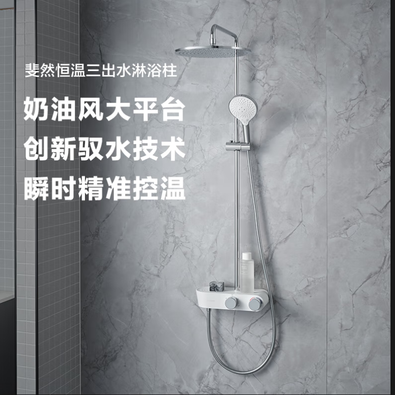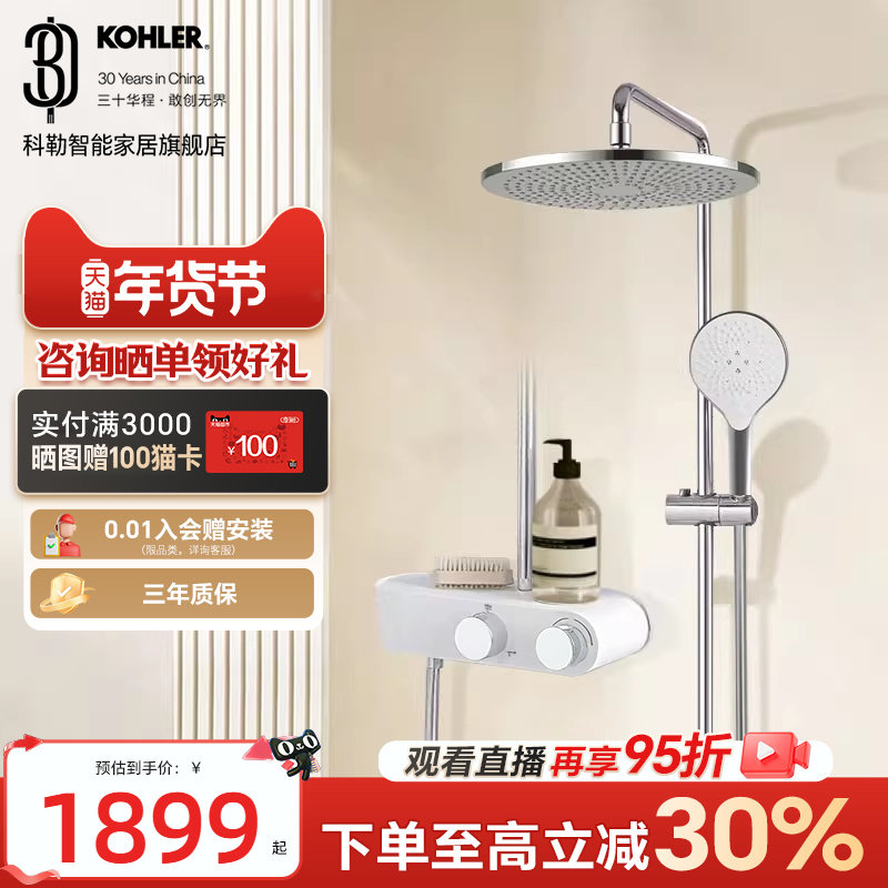 📚 【政府补贴15%】科勒斐然淋浴花洒套装恒温三出水浴室淋浴柱花洒