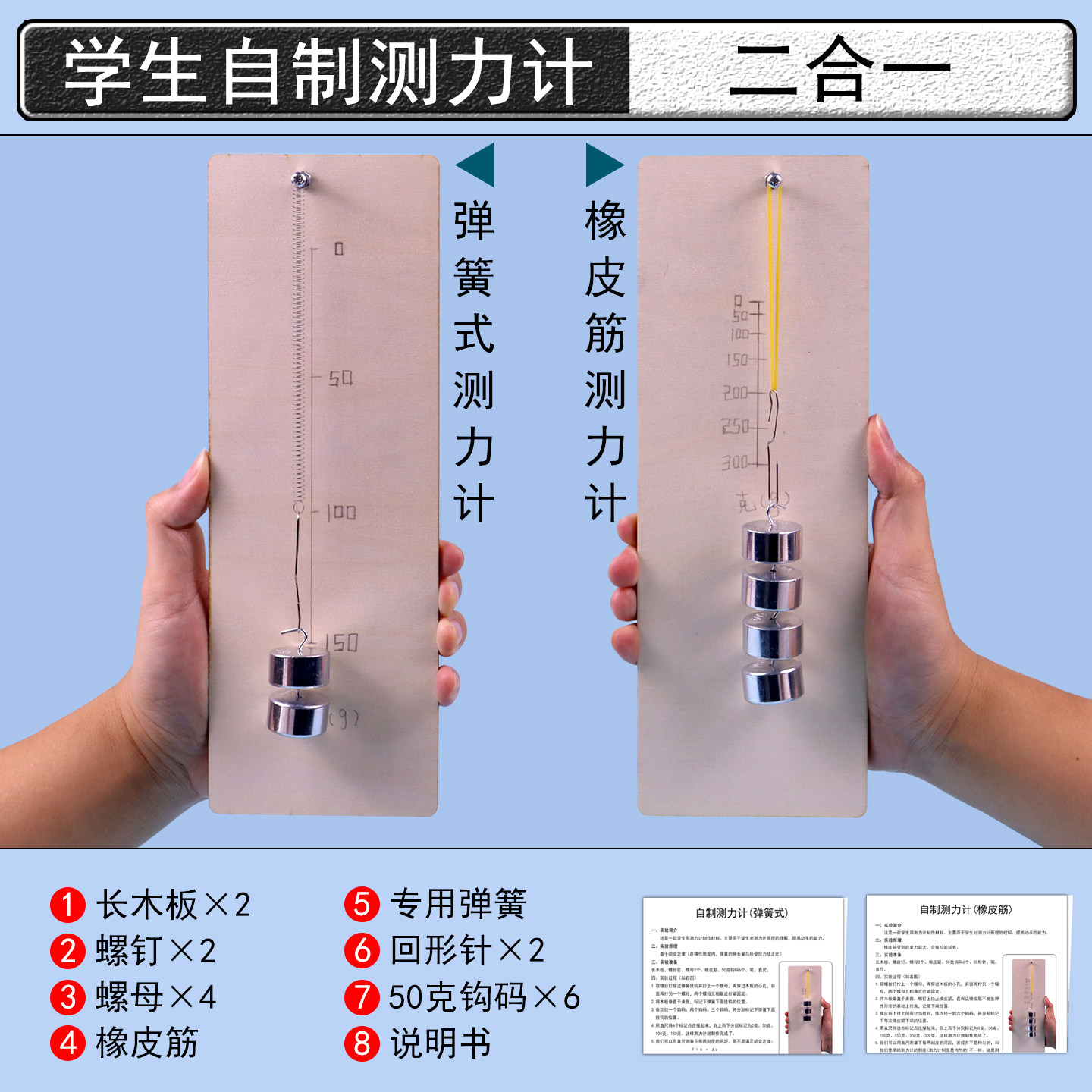 📚 diy学生自制弹簧测力计橡皮筋测力计拉力器材料包初中物理力学小学科学科技小制作教学长木板回形针制作发明