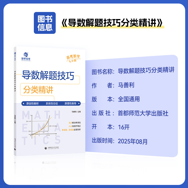 📚 育甲教育新版马善利高考数学导数解题技巧分类精讲4.0版高中数学解题模板新高考数学真题全国卷导数高三复习数学高中教辅全国通用