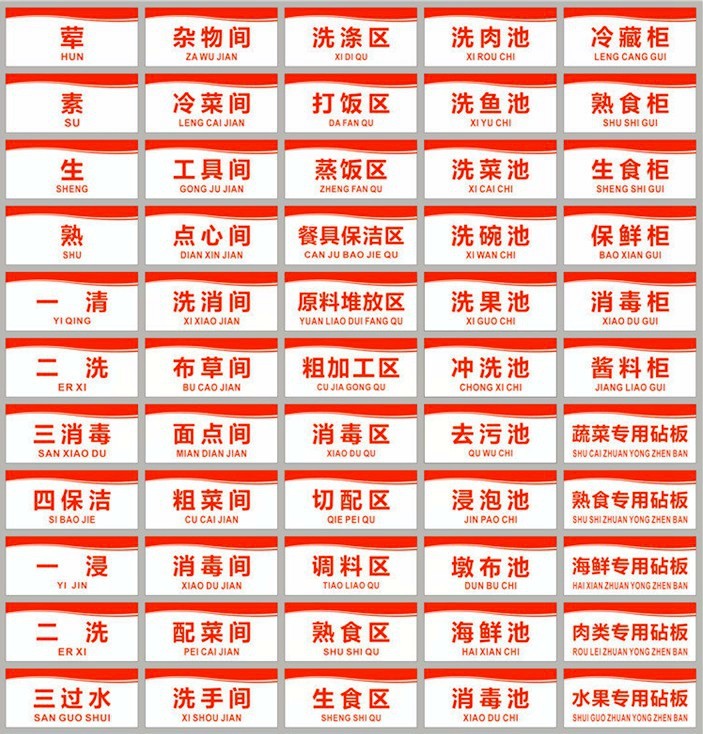 📚 系列亚克力食肆卫生分类标示牌 成品半成品标志牌 产品材料标示牌