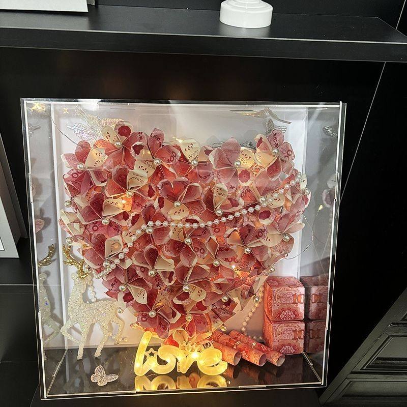 📚 爱心有钱花现金亚克力透明礼盒520心形情人节告白惊喜生日礼物