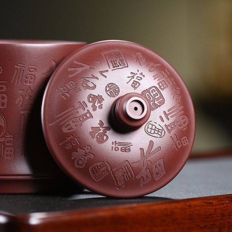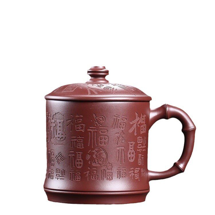 📚 宜兴紫砂高档大容量全纯手工男士带盖办公百福杯茶具茶杯