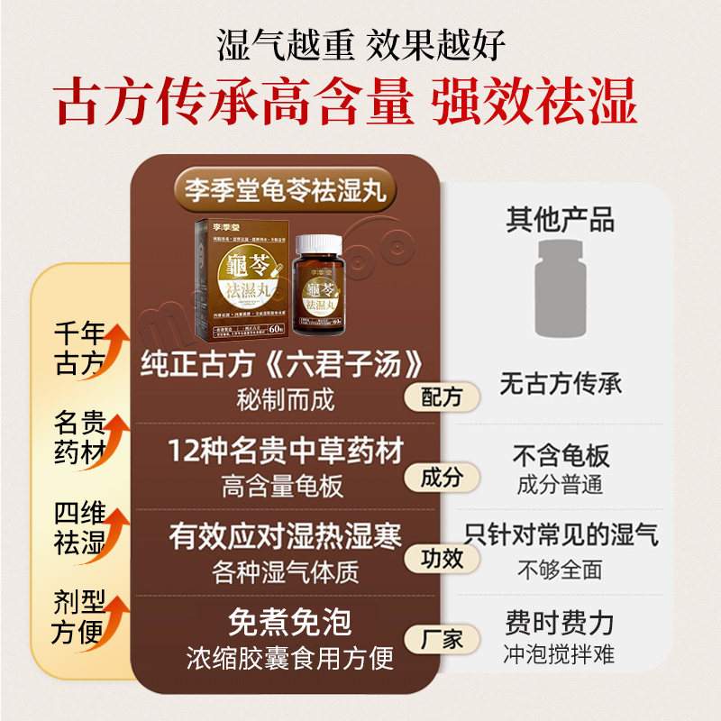 📚 香港李季堂龟苓祛湿丸无湿轻旗舰店土茯苓排去湿寒气健脾疏肝解郁