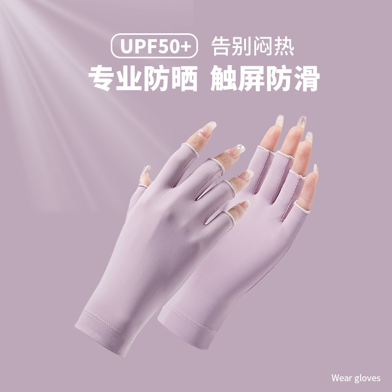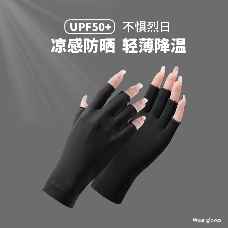 📚 防晒手套女美甲防烤黑薄款防护户外防紫外线透气半指防滑开车骑行